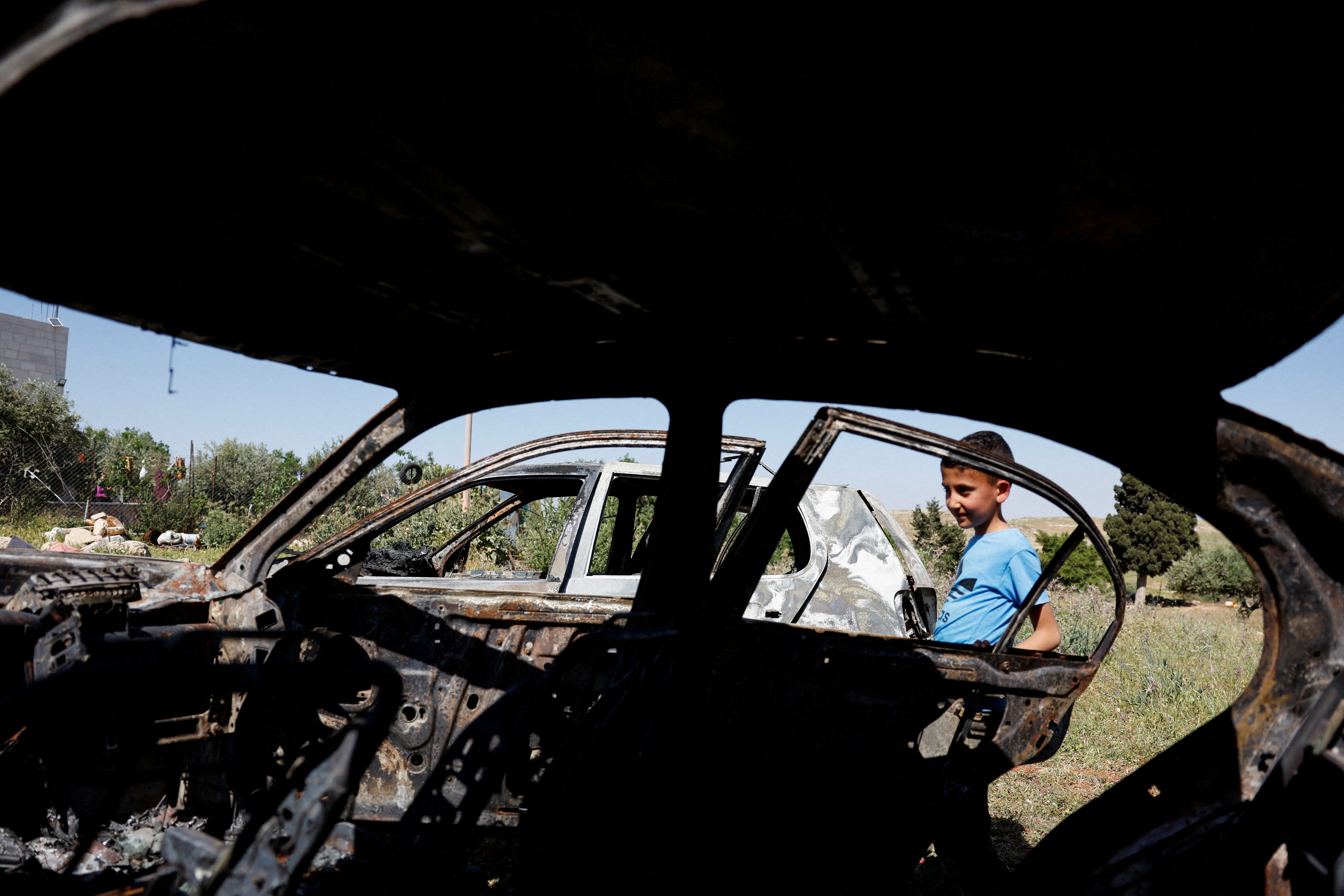 定居者在襲擊期間還縱火燒燬了一輛由巴勒斯坦民防服務送往 al-Mughayyer 的消防車,民防部門表示。當路透社記者在週三訪問時,燒焦的殘骸正在裝上卡車。