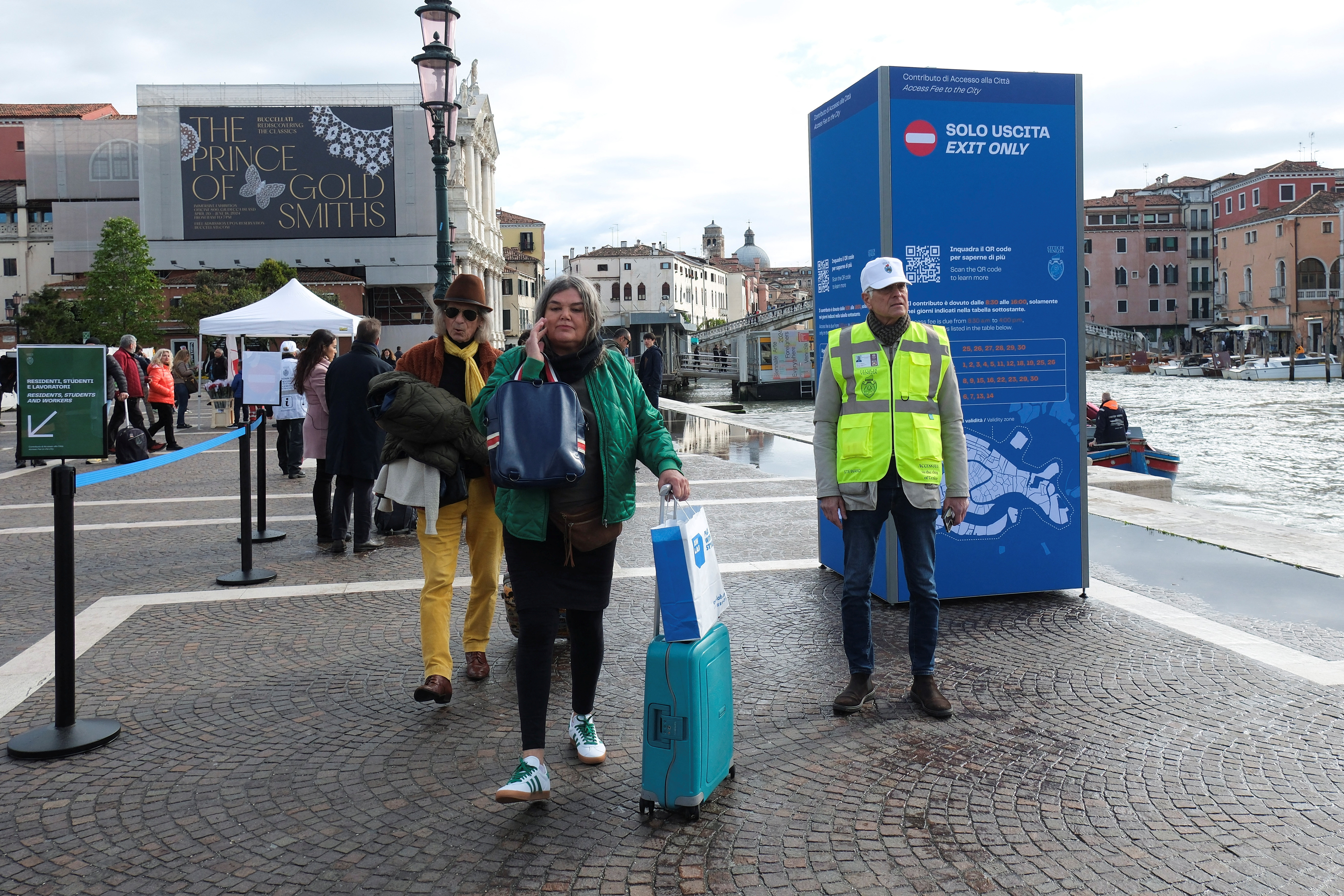 在火車站外和一個入口人行橋附近設置了標誌,警告遊客在進入威尼斯狹窄的小巷之前必須支付新的5歐元(5.35美元)費用。
