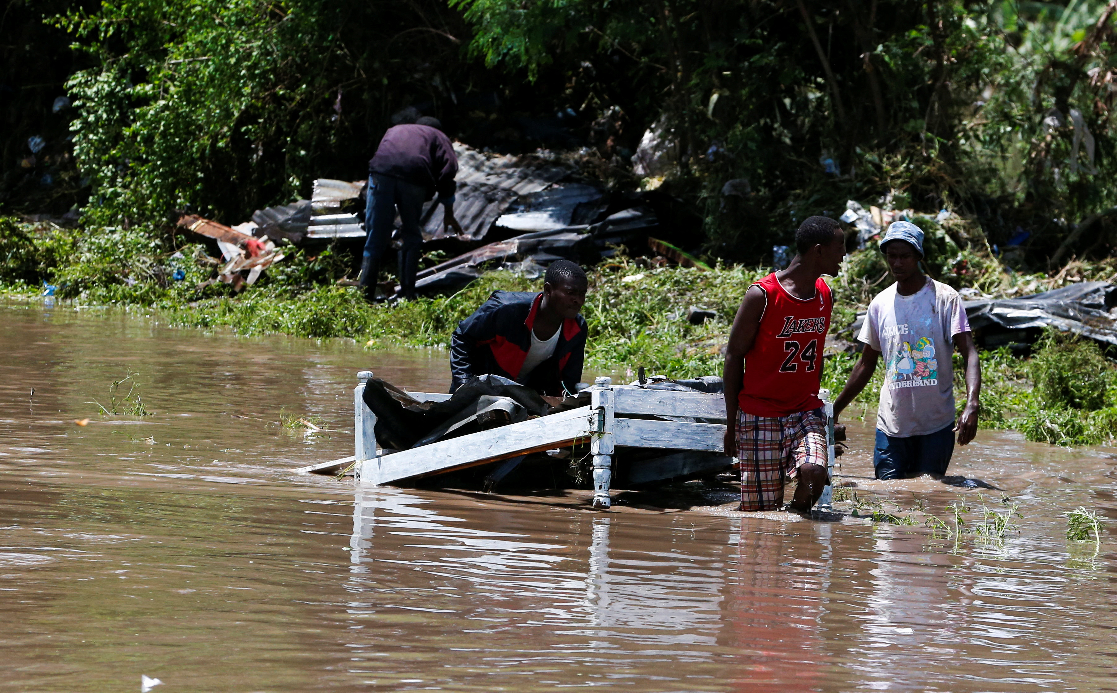 居民們在內羅畢馬薩雷谷定居點的洪水氾濫後,翻找廢墟中的物品,恢復他們的財物,2024年4月25日。路透社/莫尼卡·姆萬吉