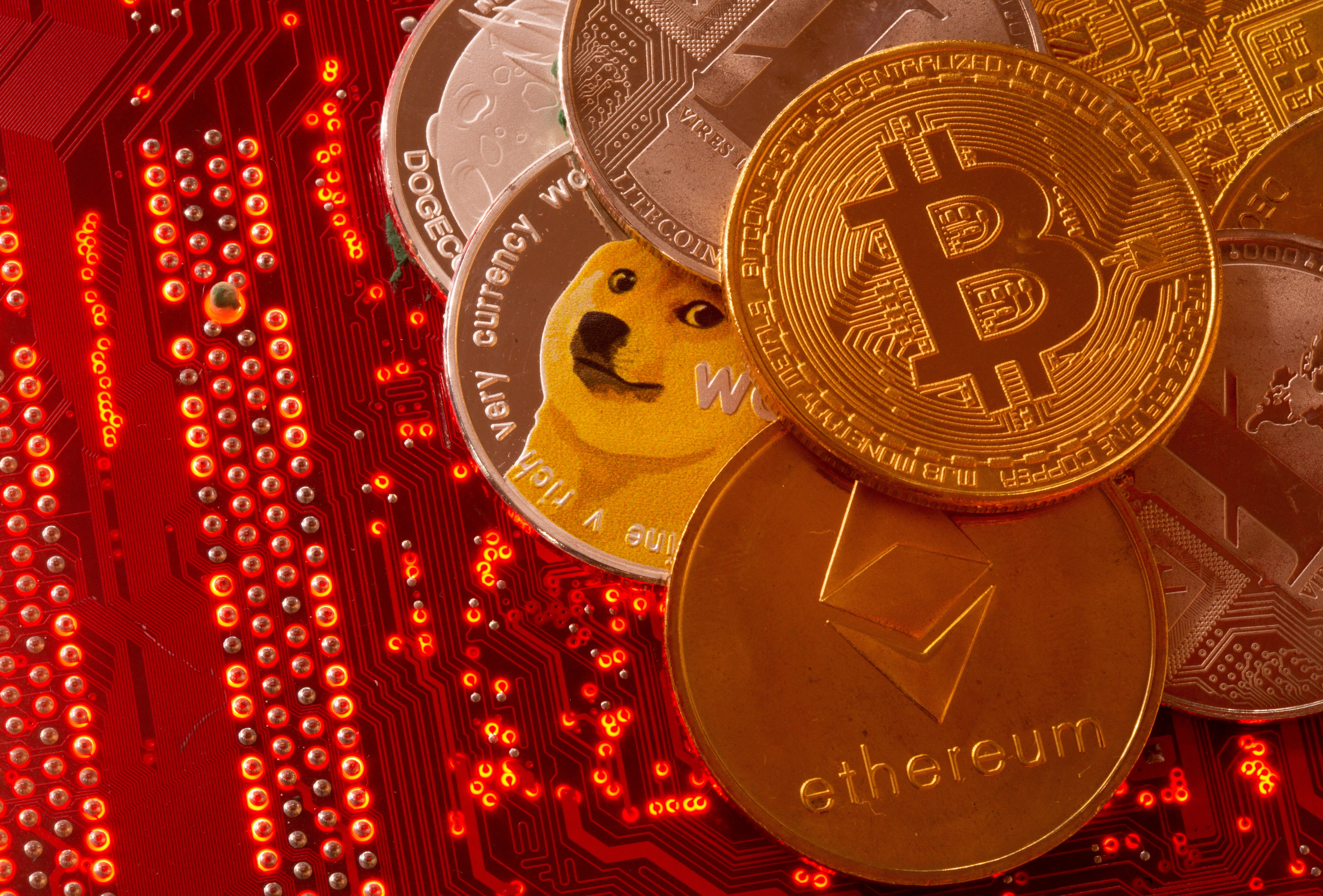 比特幣、以太坊、狗狗幣、瑞波幣、萊特幣的代表在這張於2021年6月29日拍攝的插圖中放置在PC主板上。路透社/Dado Ruvic/插圖/檔案照片新德里,5月16日(路透社) - 印度市場監管機構建議多個監管機構監督加密貨幣交易,文件顯示,這是迄今為止該國至少一些當局對允許使用私人虛擬資產持開放態度的最強信號。