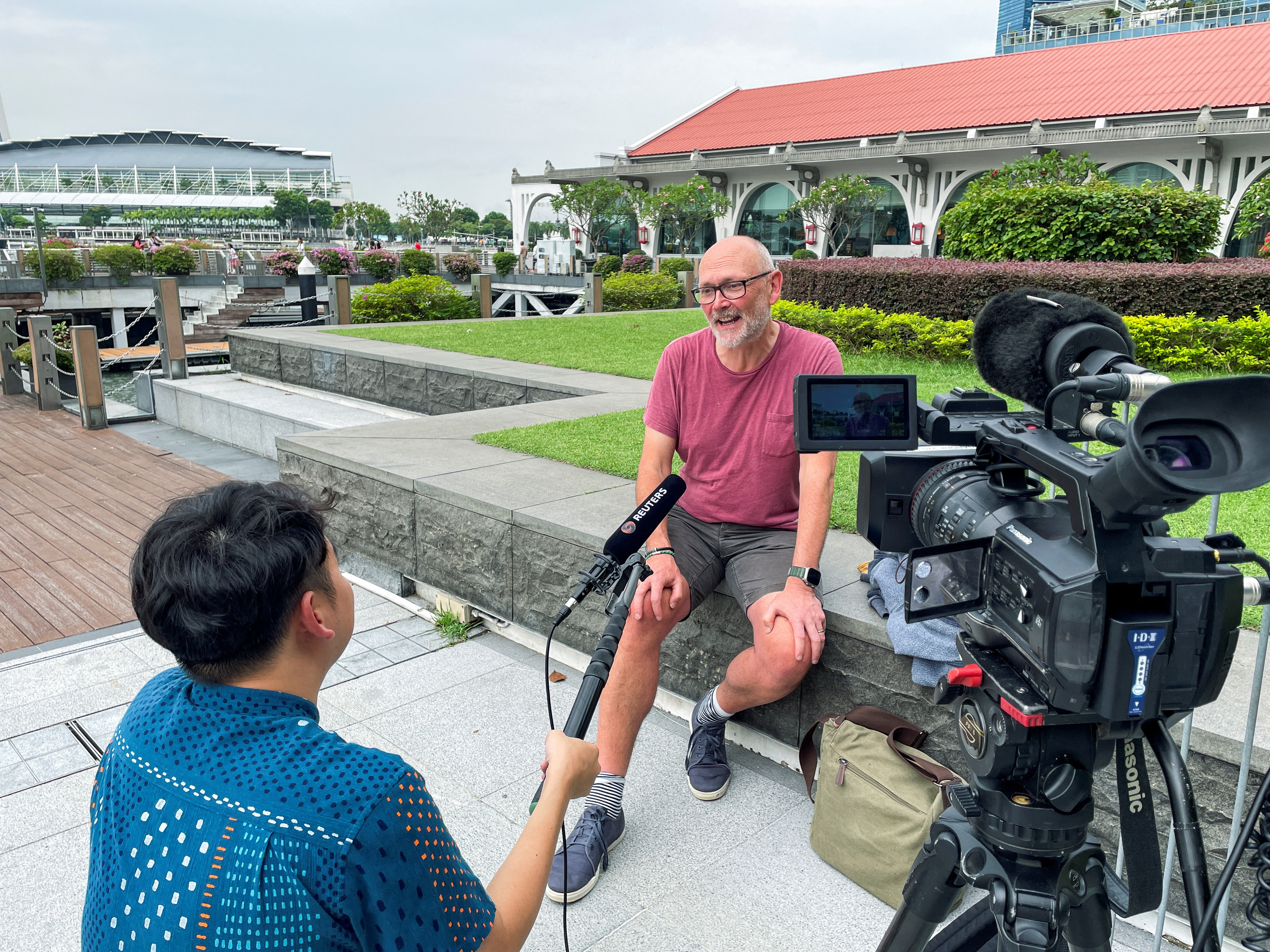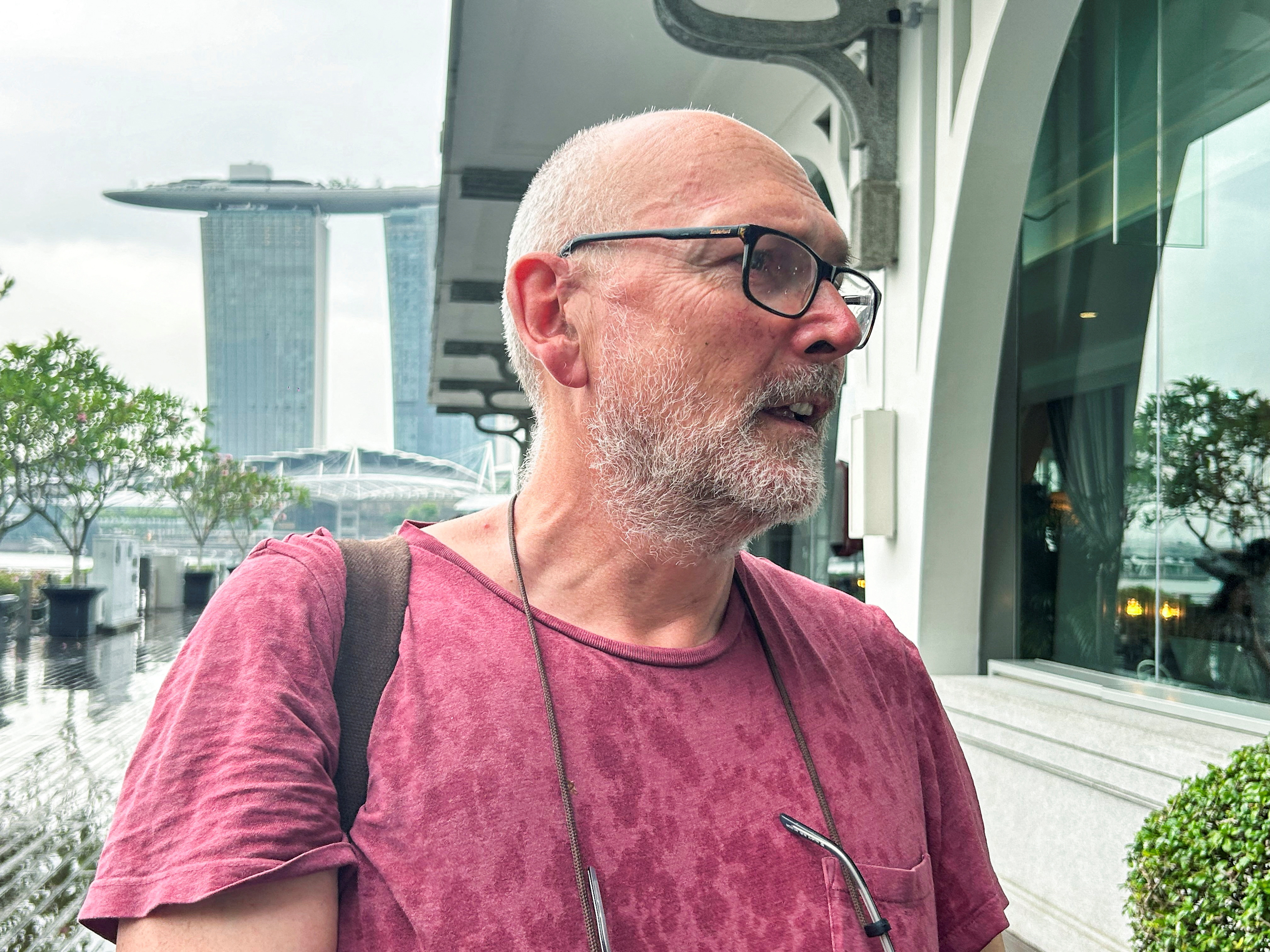 第1項,共6項 英國公民安德魯·戴維斯,54歲,是新加坡航空SQ321航班的乘客,該航班在從英國倫敦飛往新加坡的途中遭遇嚴重顛簸後被迫改道至泰國曼谷,於2024年5月22日在新加坡接受路透社採訪。路透社/萊昂·謝勒爾