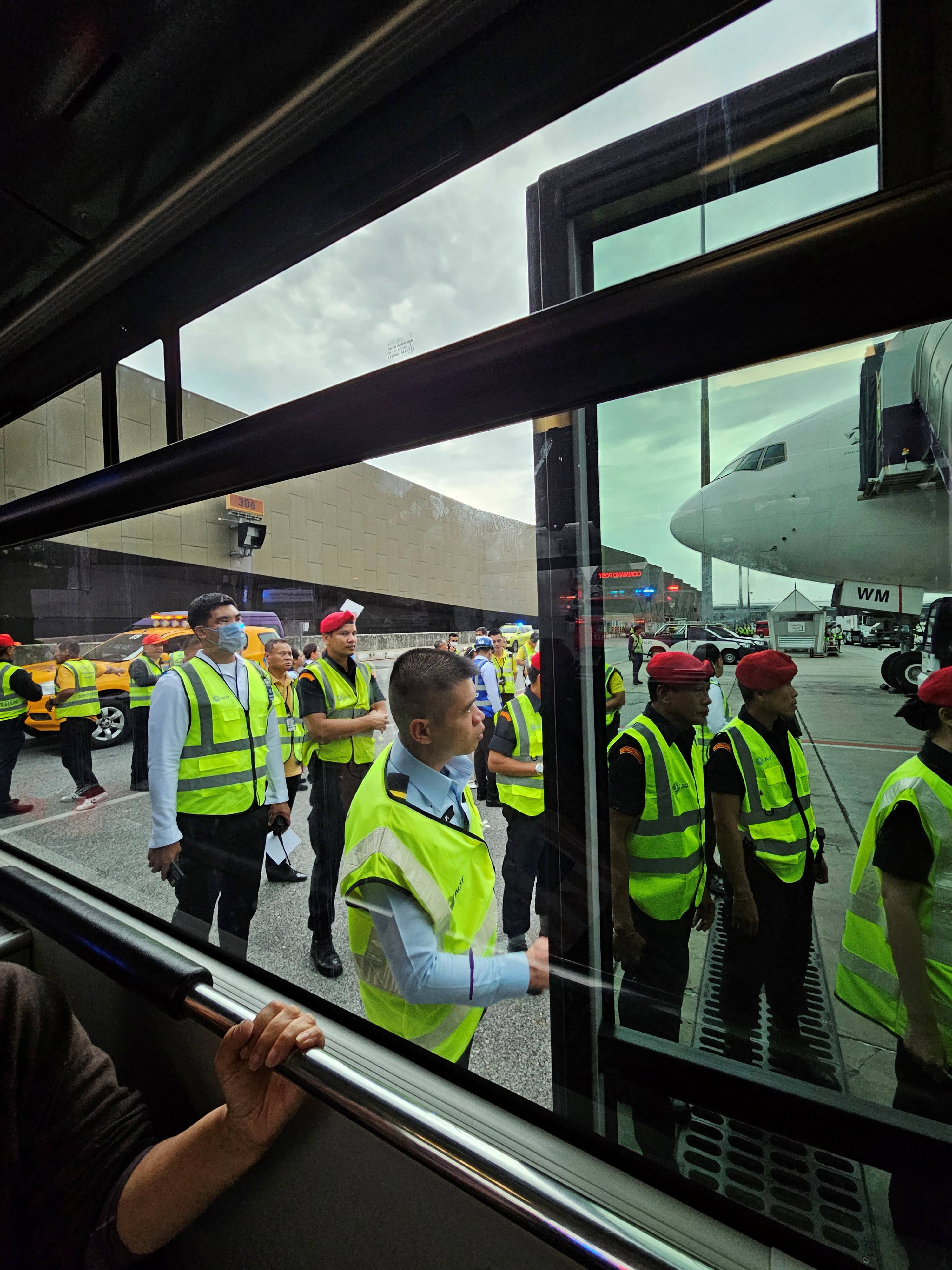 飛行員宣佈醫療緊急情況,並將飛機轉向曼谷,約一個小時後降落,迎接他們的是大量的救護車和急救人員。