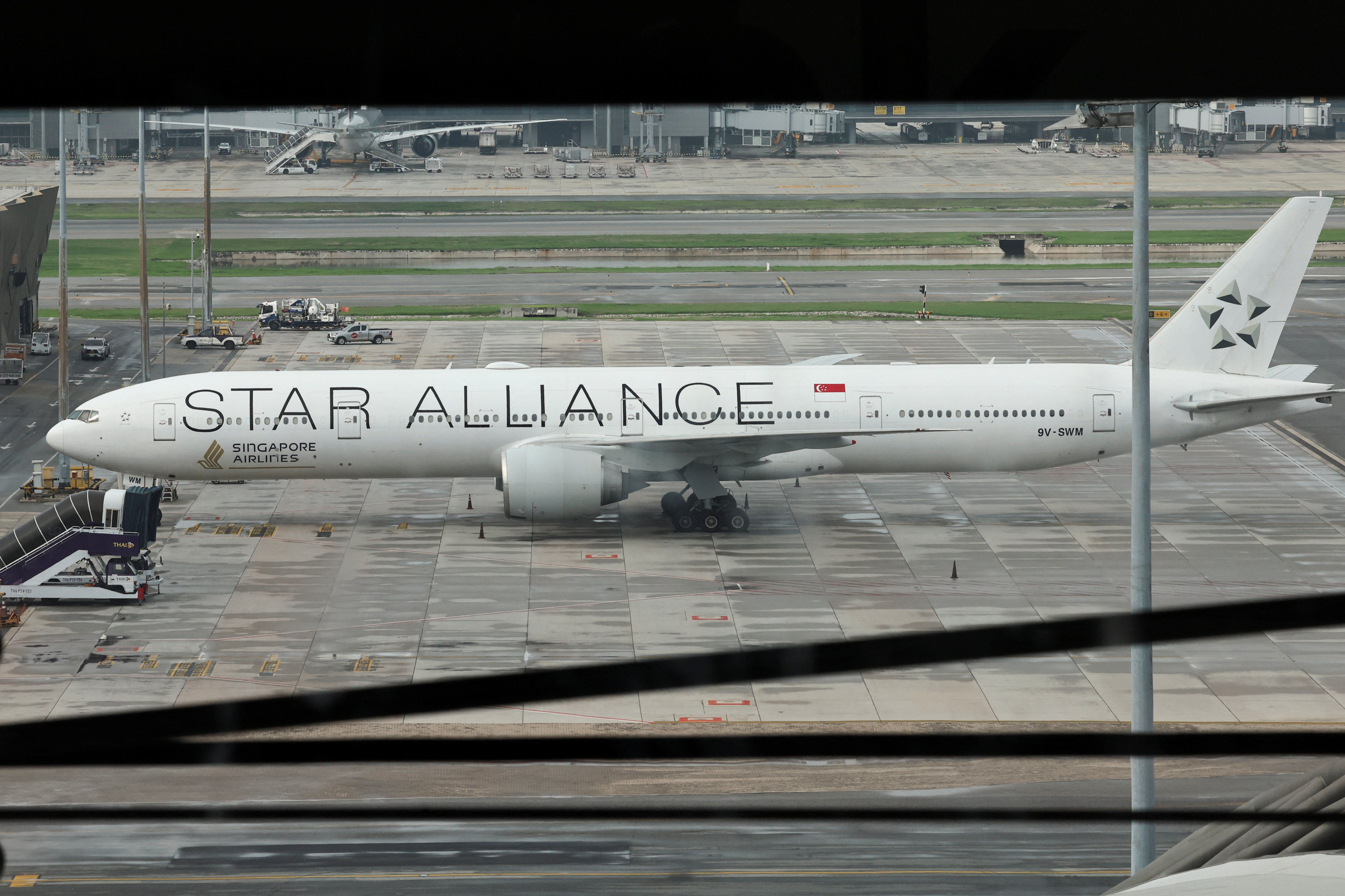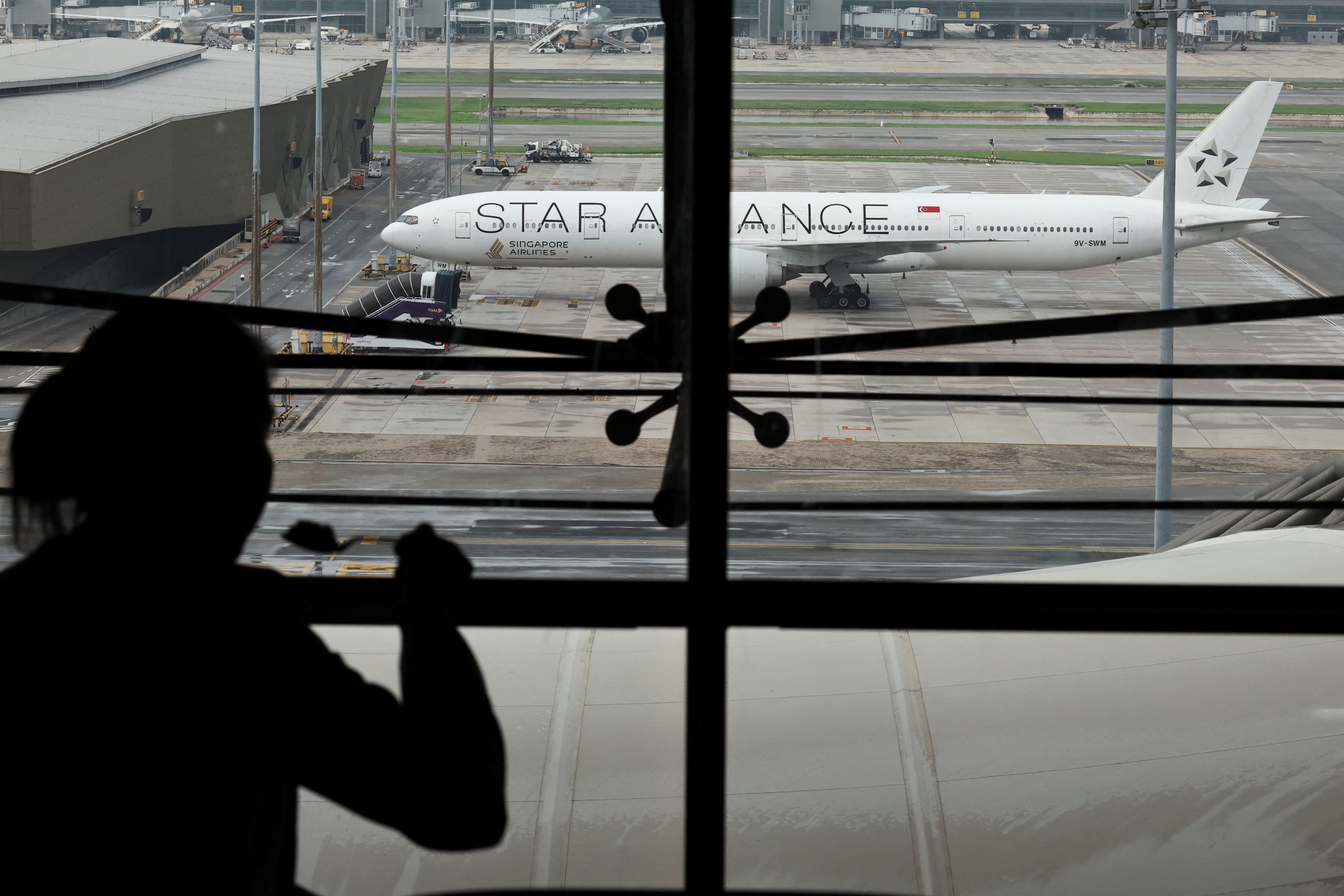 4架新加坡航空公司飛機之一,航班SQ321,緊急降落在泰國曼谷素萬那普國際機場的停機坪上,2024年5月22日。路透社/Athit Perawongmetha