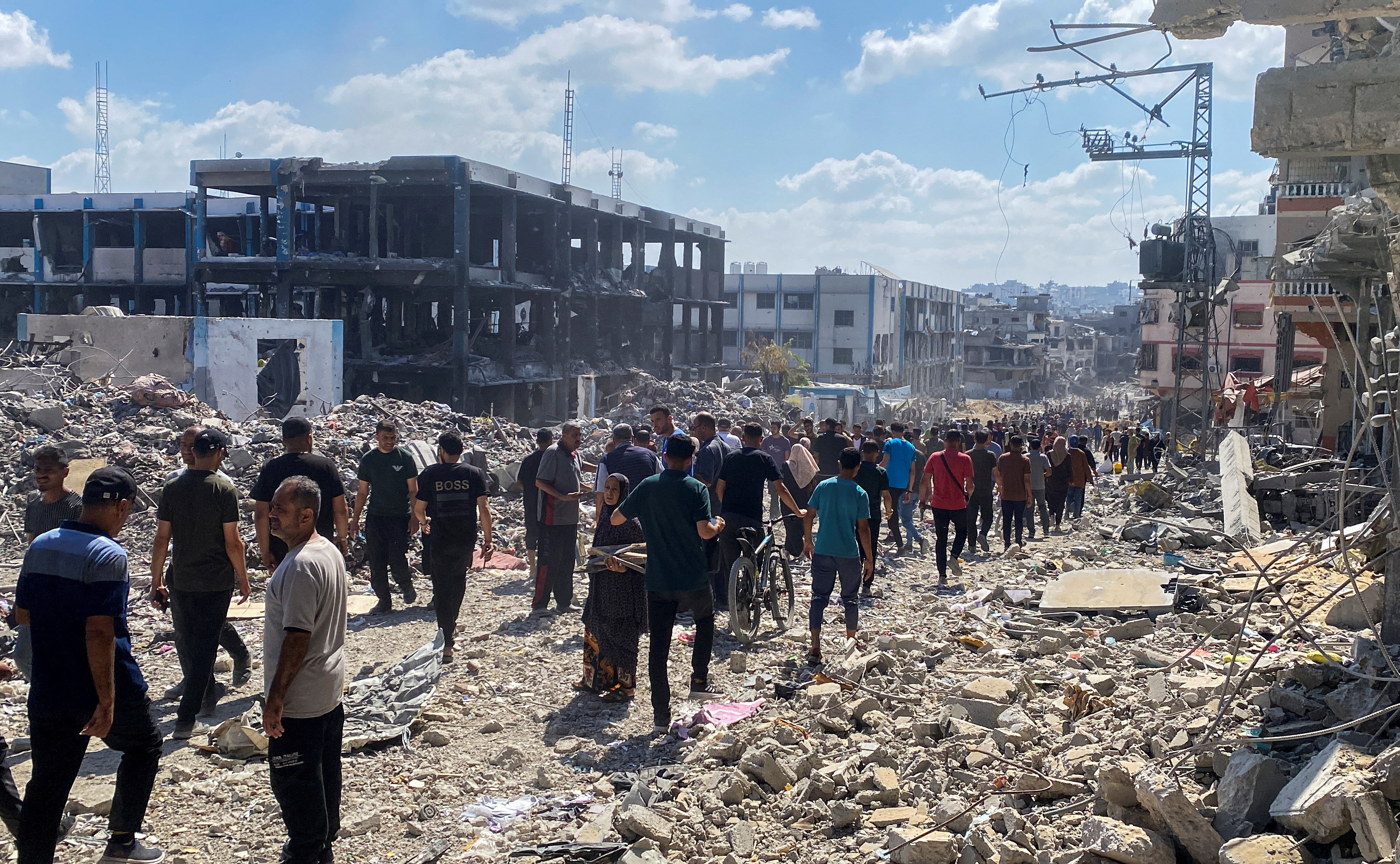 第1項,巴勒斯坦人在以色列部隊從加沙北部賈巴利亞難民營的一部分撤離後檢查損壞情況時前往,這是在2024年5月30日發生的一次襲擊後。路透社/馬哈茂德·伊薩