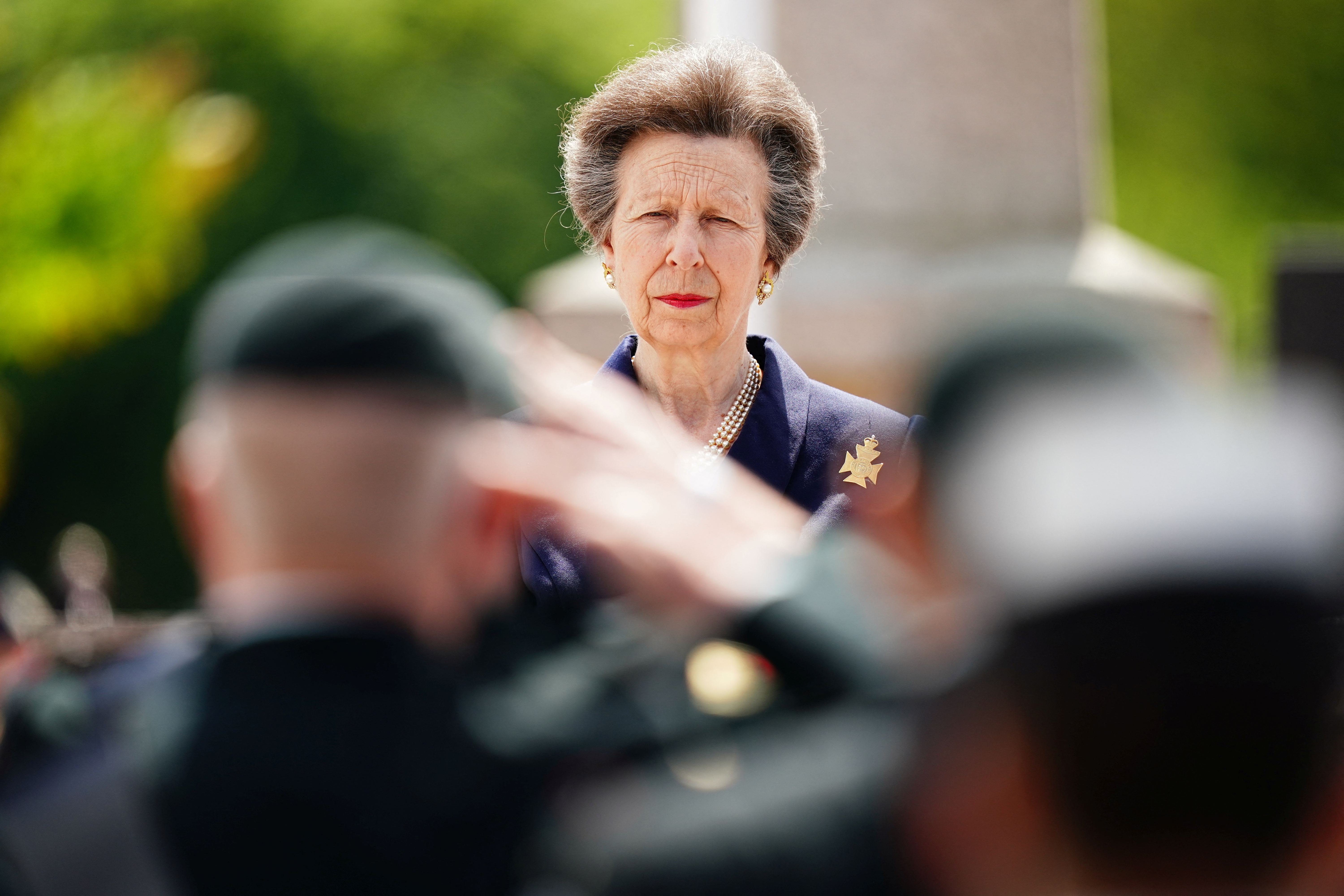 第1項,英國公主安妮參加儀式,揭幕一座加拿大步槍手雕像,以紀念諾曼底登陸80週年,2024年6月5日,法國諾曼底。路透社/漢娜·麥凱/池/檔案照片