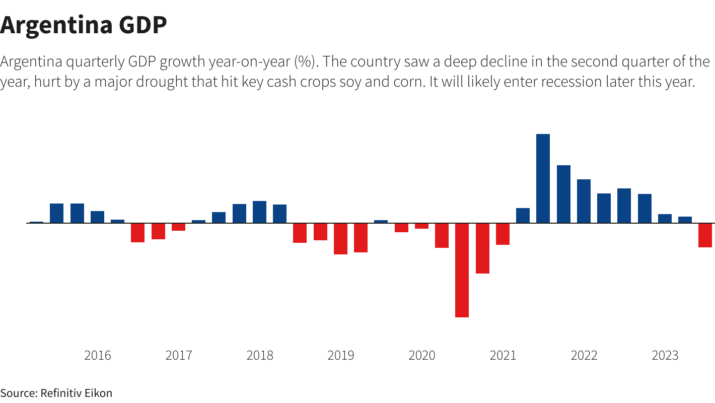 這個南美國家的國內生產總值(GDP)在今年第一季度比2023年第四季度下降了2.6%,這是連續第二個季度出現季度收縮,通常被定義為衰退。