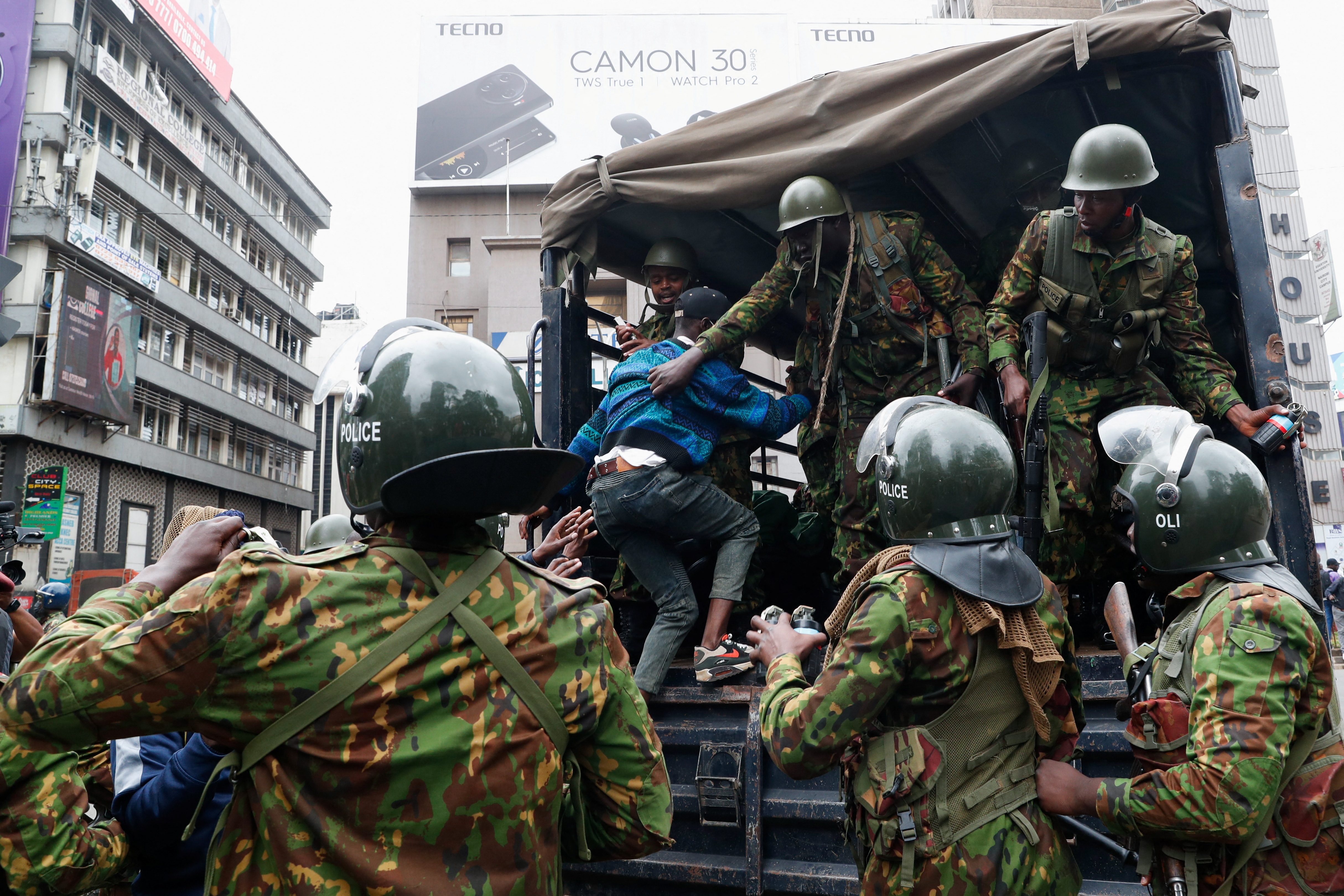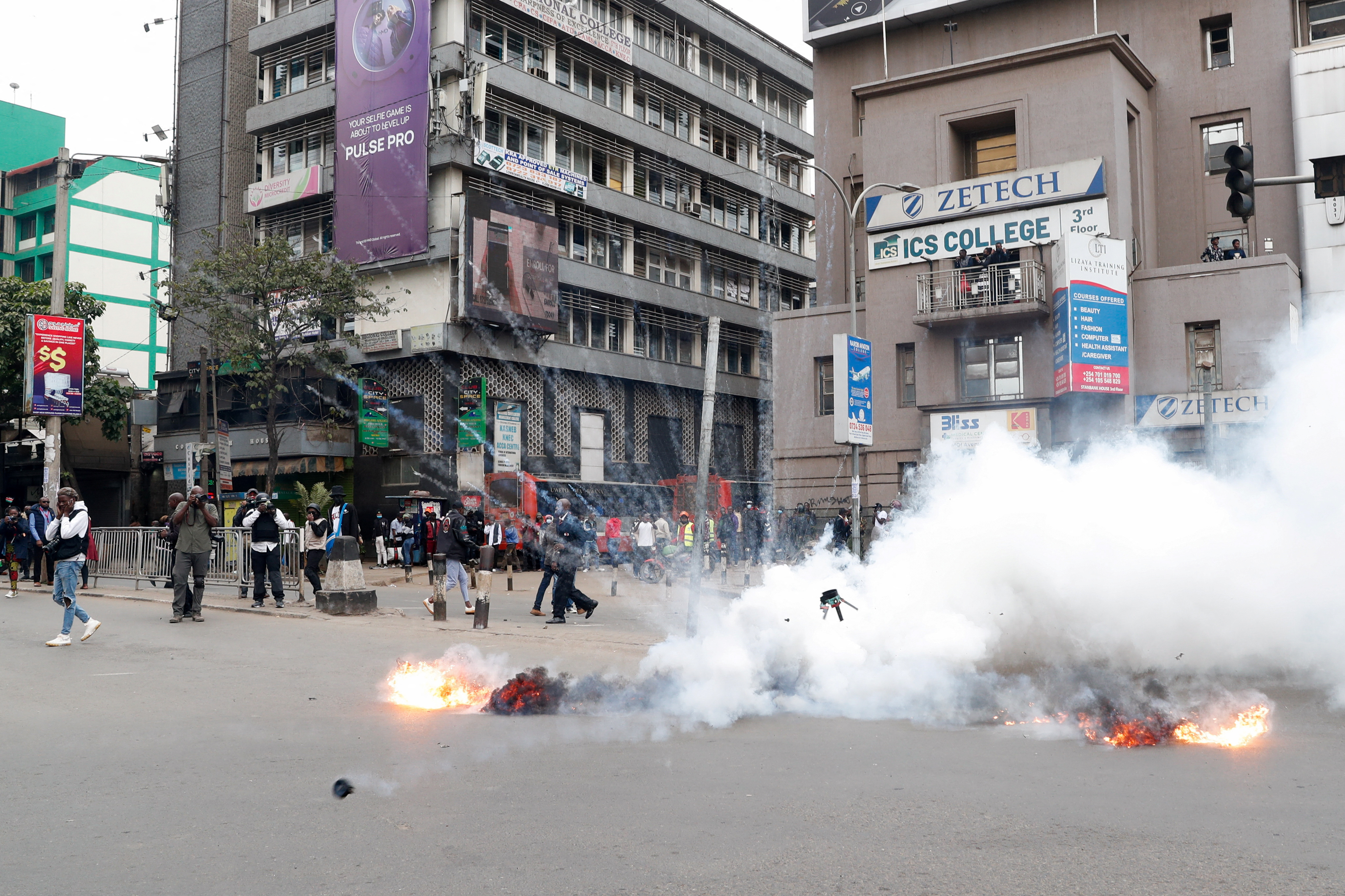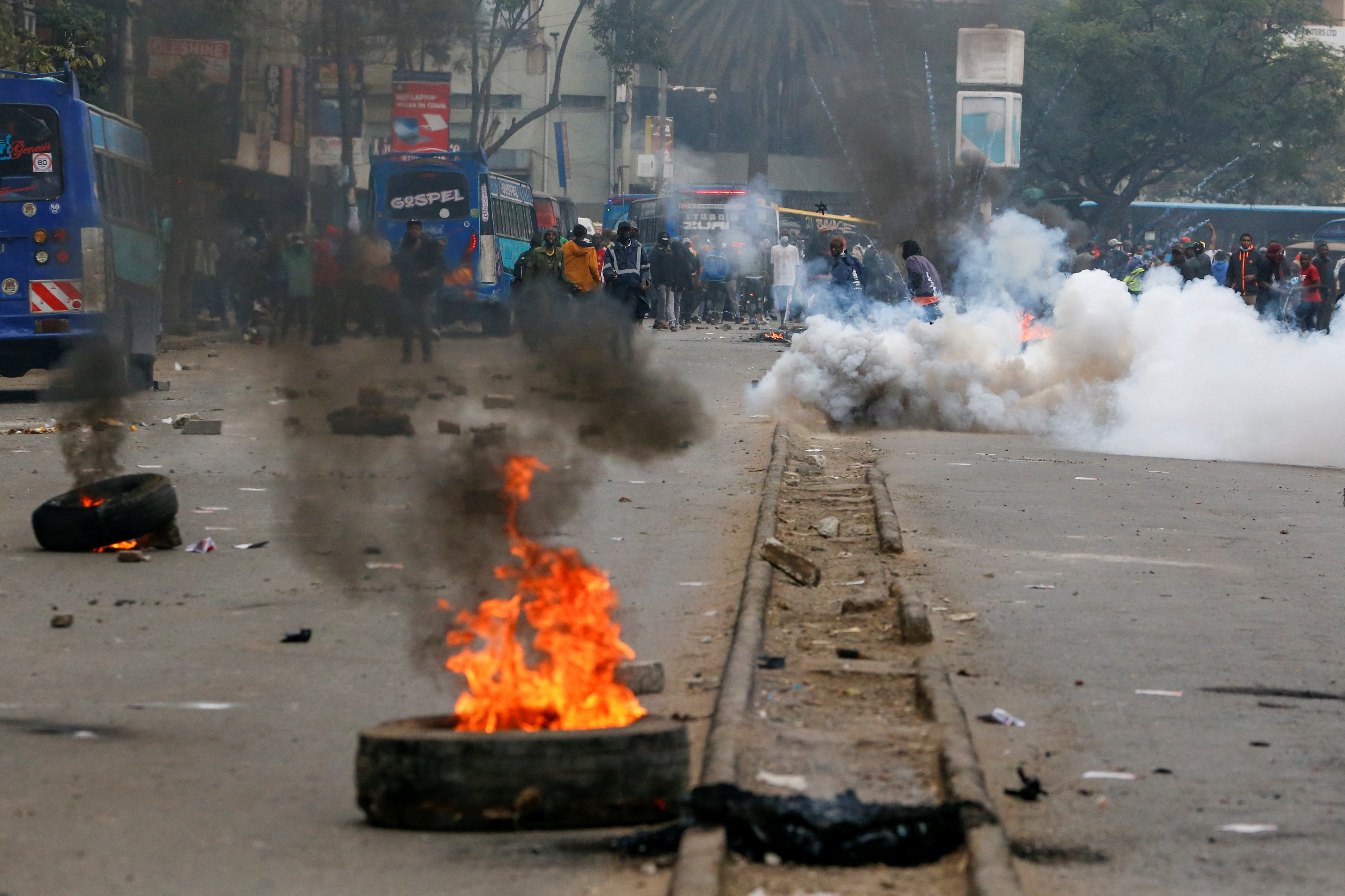 在內羅畢南部郊區的基滕格拉鎮,警察多次朝着數百名抗議者開火,其中一些人在投擲石塊,路透社電視畫面顯示。抗議者還燒燬輪胎,揮舞肯尼亞國旗,並高呼“Ruto必須下台!”