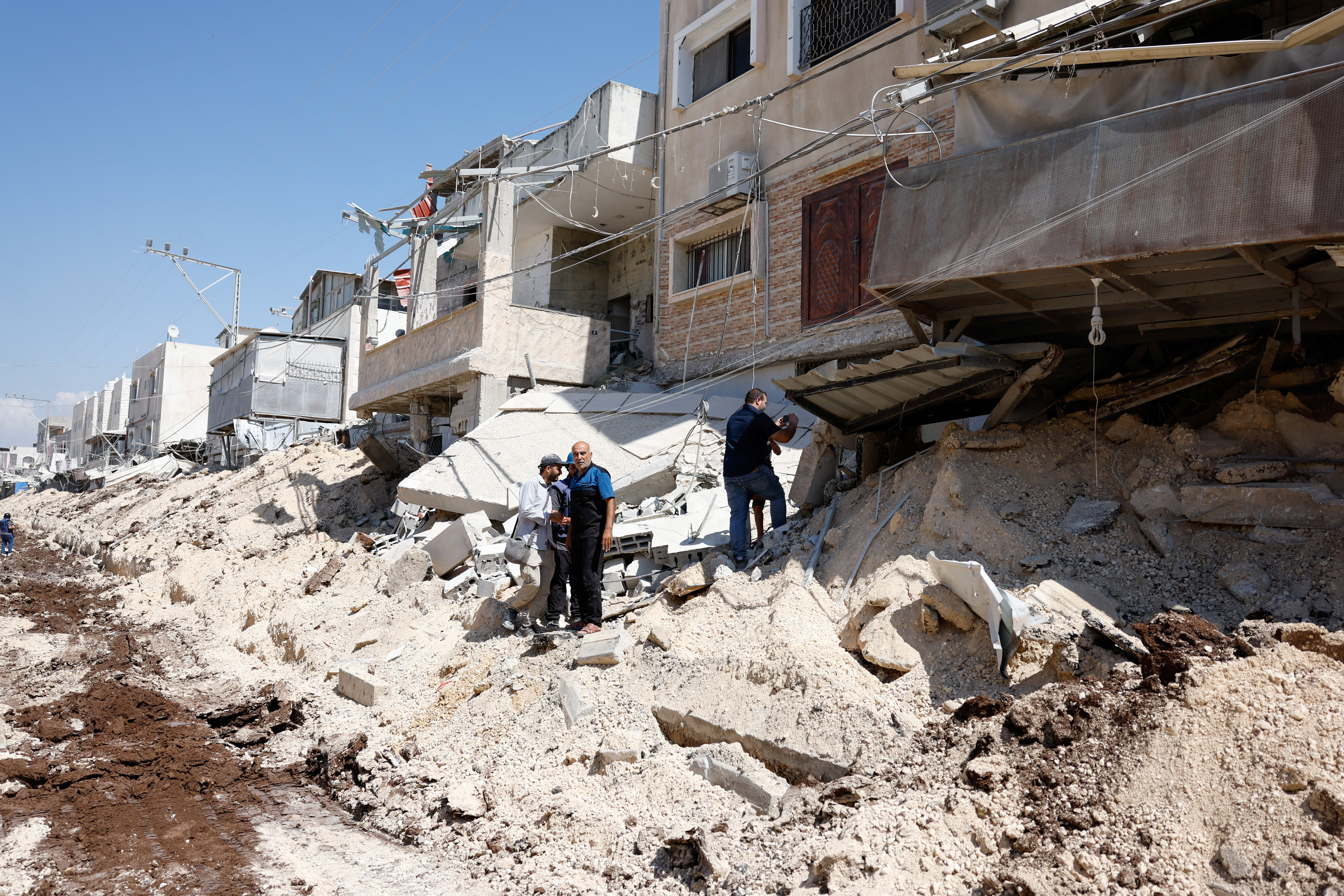 巴勒斯坦女孩站在被以色列襲擊破壞的商店前,2024年6月25日,位於以色列佔領的約旦河西岸的傑寧營地。路透社/拉尼恩·薩瓦夫塔/文件照片 2024年7月17日,約旦河西岸傑寧難民營被以色列軍隊推土機數月前毀壞的道路仍然無法通行,因為巴勒斯坦當局無力修復。政府僱員的工資只有一小部分,衞生服務正在崩潰。