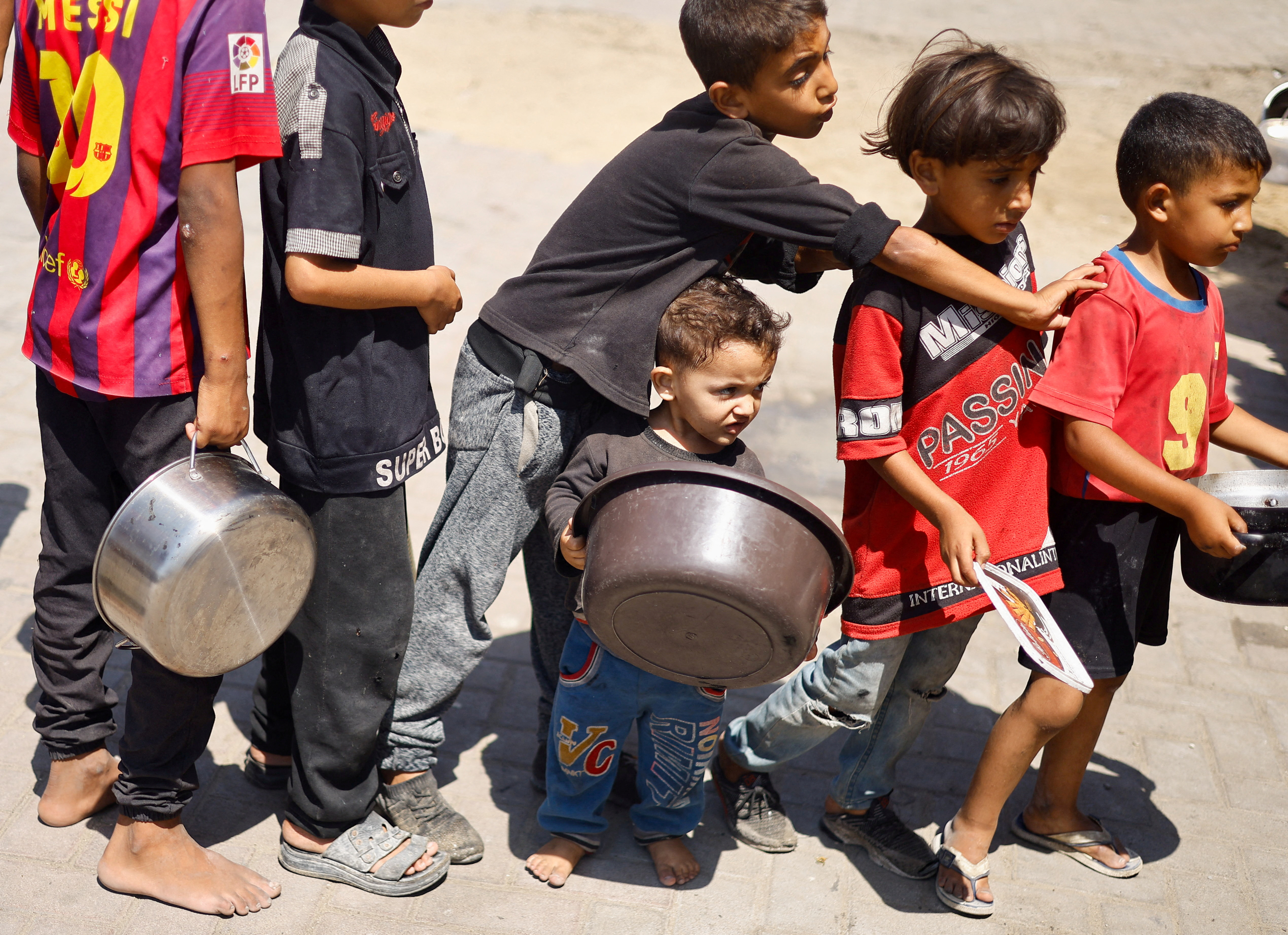 巴勒斯坦兒童聚集在一家慈善廚房烹飪的食物旁,由於以色列 - 哈馬斯衝突持續,加沙南部汗尤尼斯地區的食物短缺,2024年6月26日。路透社/穆罕默德·塞勒姆/文件照片羅馬,7月18日(路透社) - 據一份聲明稱,意大利已經派遣一架載有加沙人口食品供應和衞生設備的人道主義航班抵達約旦,作為羅馬的“為加沙提供食物”倡議的一部分,以幫助那裏的平民。援助物資包括60多噸食品、衞生包和衞生設備,以及150頂帳篷。這架從南部城市布林迪西起飛的航班已經降落在約旦首都安曼,物資將從那裏運送到加沙。