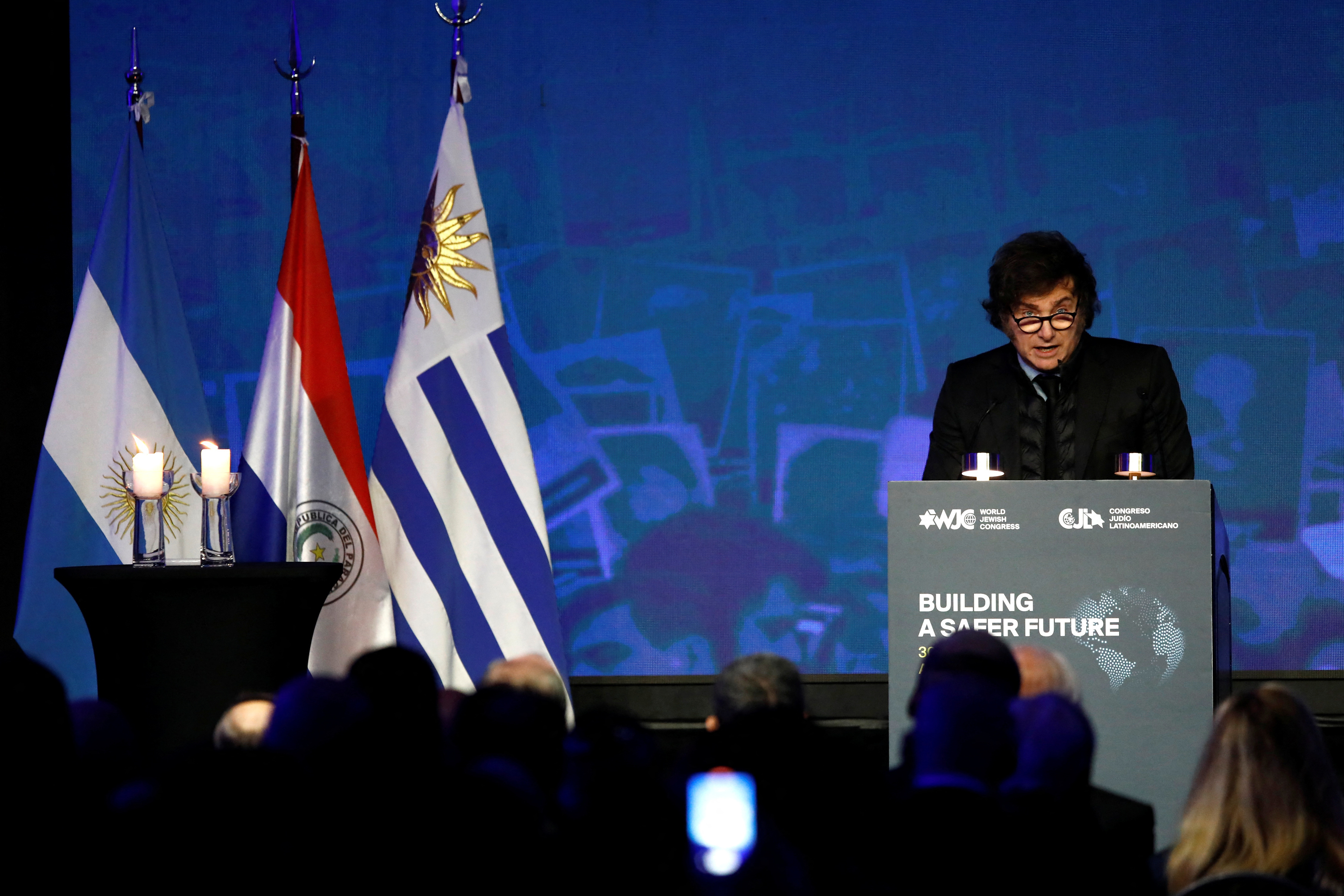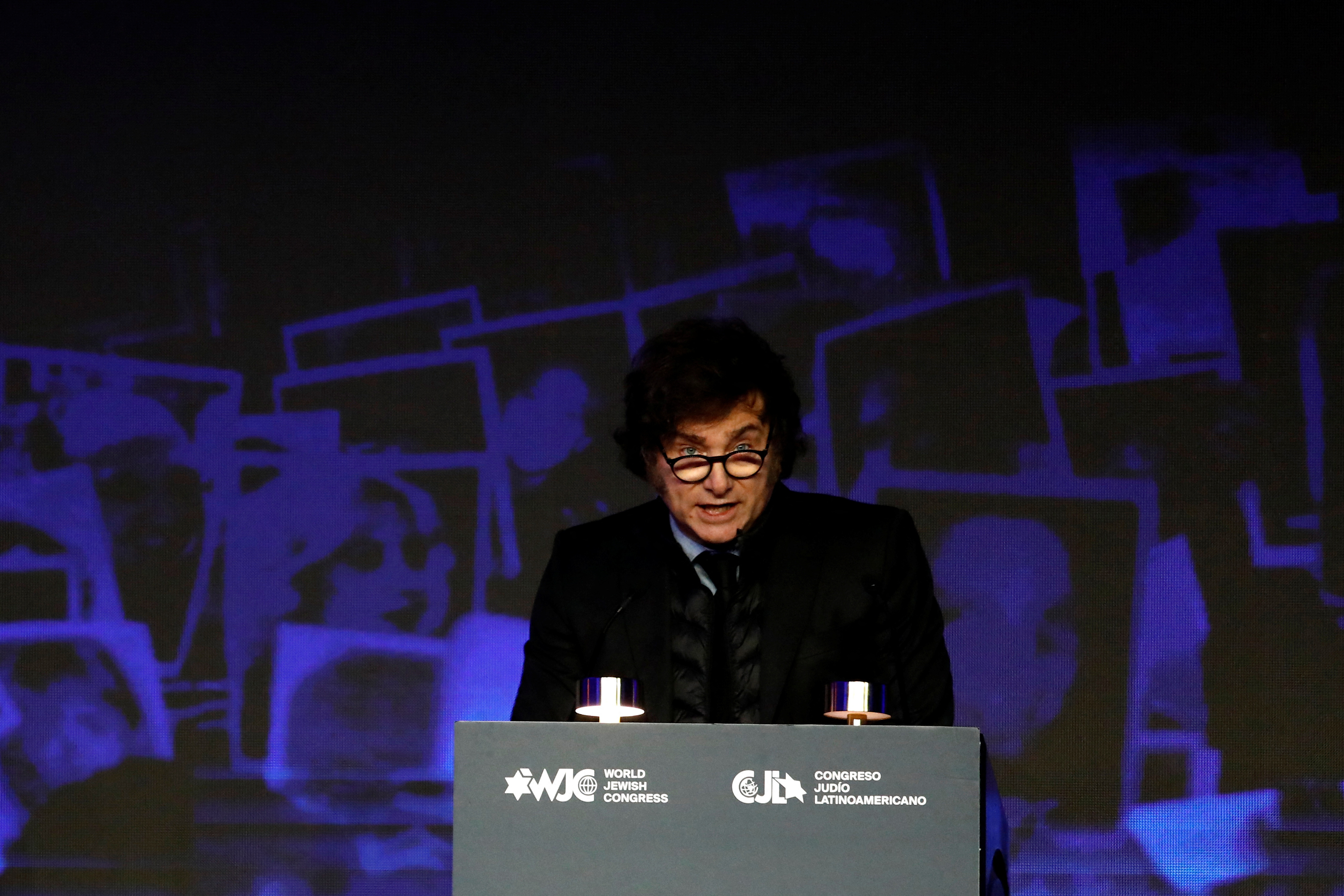 2個項目之一 阿根廷總統哈維爾·米萊出席了紀念活動,紀念1994年對阿根廷以色列互助協會(AMIA)社區中心的爆炸襲擊,標誌着這次襲擊的30週年,於2024年7月17日在阿根廷布宜諾斯艾利斯舉行。路透社/馬丁·卡薩里尼