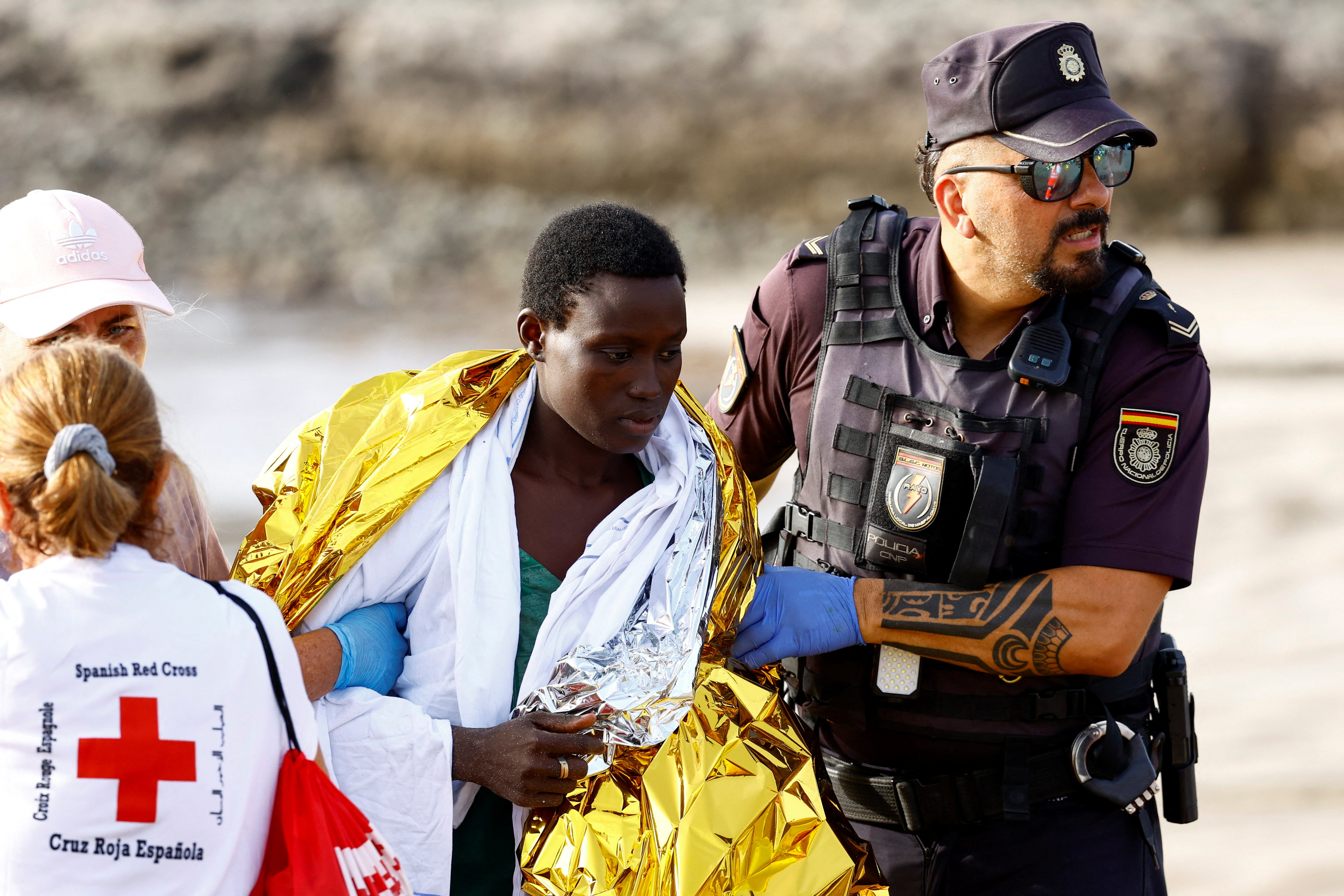 筋疲力盡的移民抵達西班牙加那利羣島的海灘 | 路透社