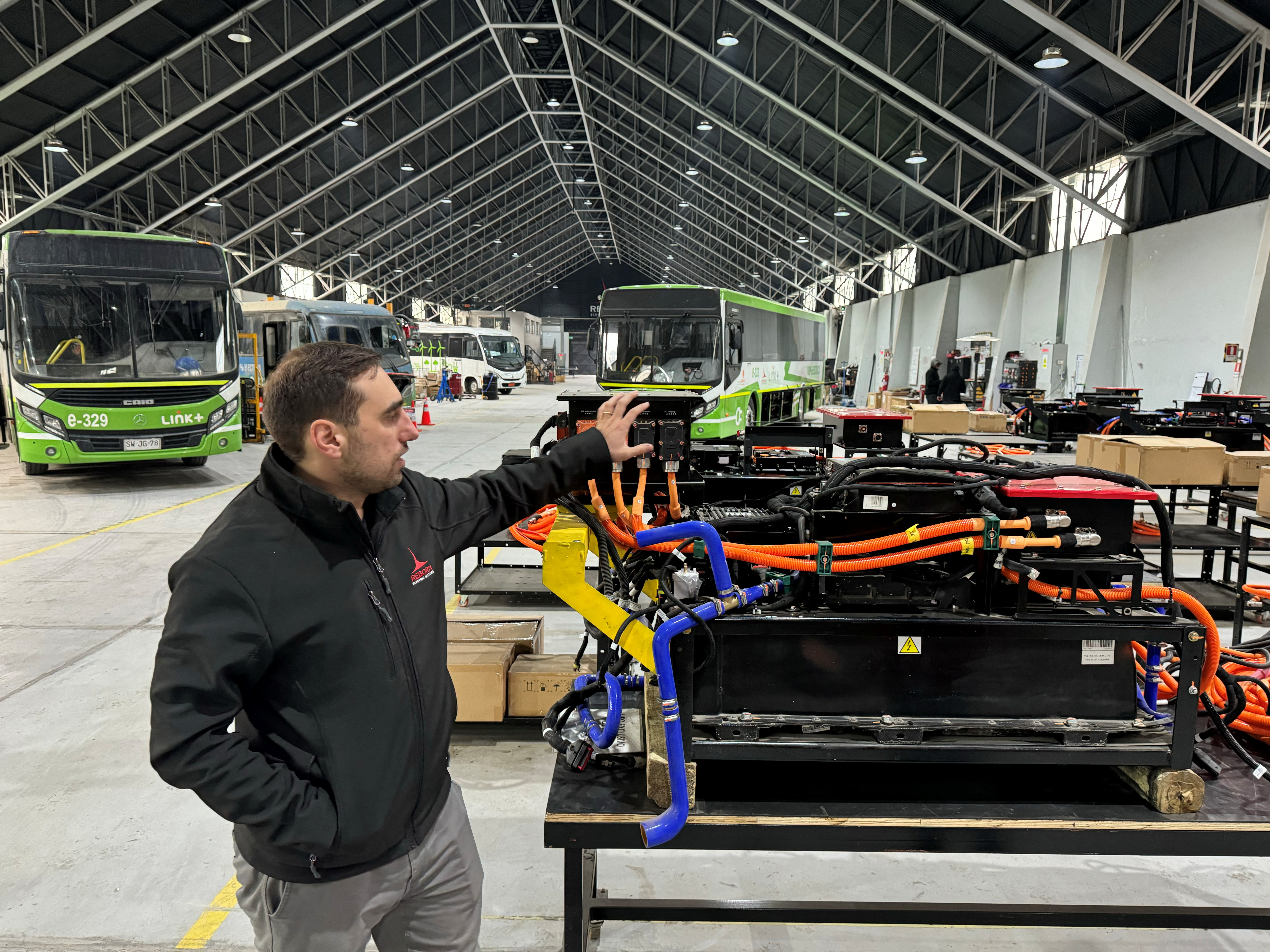 第1項,共5項 裏卡多·雷佩寧,‘重生電動汽車’聯合創始人,在他們位於智利蘭卡瓜的公交車組裝廠展示了一種電動公交車的電氣組件,這些公交車被用於智利國家銅業公司(Codelco)的埃爾·特寧特銅礦,2024年7月31日。路透社/法比安·坎貝羅/檔案照片