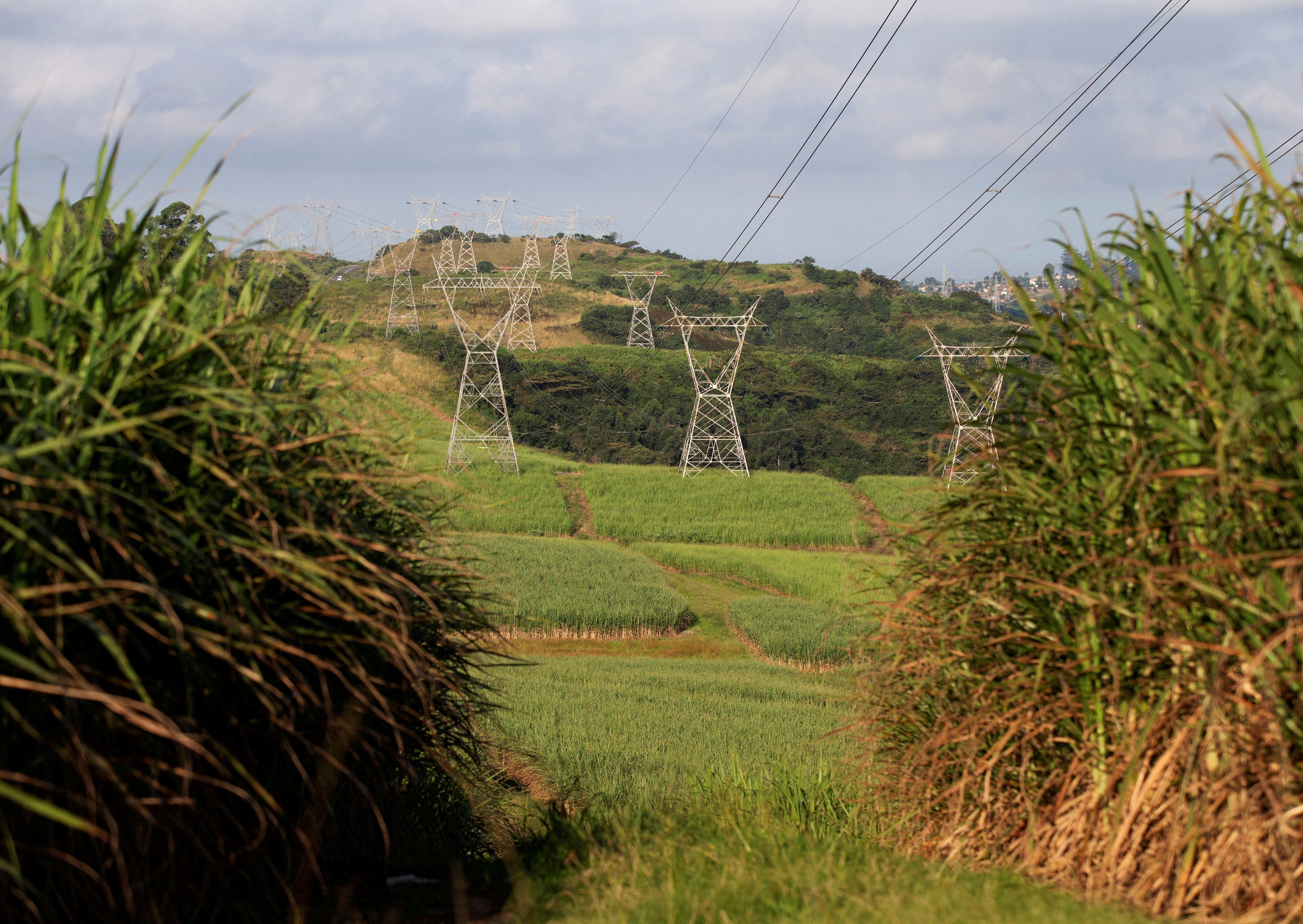 南非肖恩格維尼的Tongaat Hulett農場,國有電力公司Eskom的電力線路穿過甘蔗田,拍攝於2018年4月29日。路透社/Rogan Ward/檔案照片開普敦,8月27日(路透社)- 南非私營電力生產商正在尋求賠償因遵循國有公用事業Eskom的要求而損失的收入,行業高管表示。