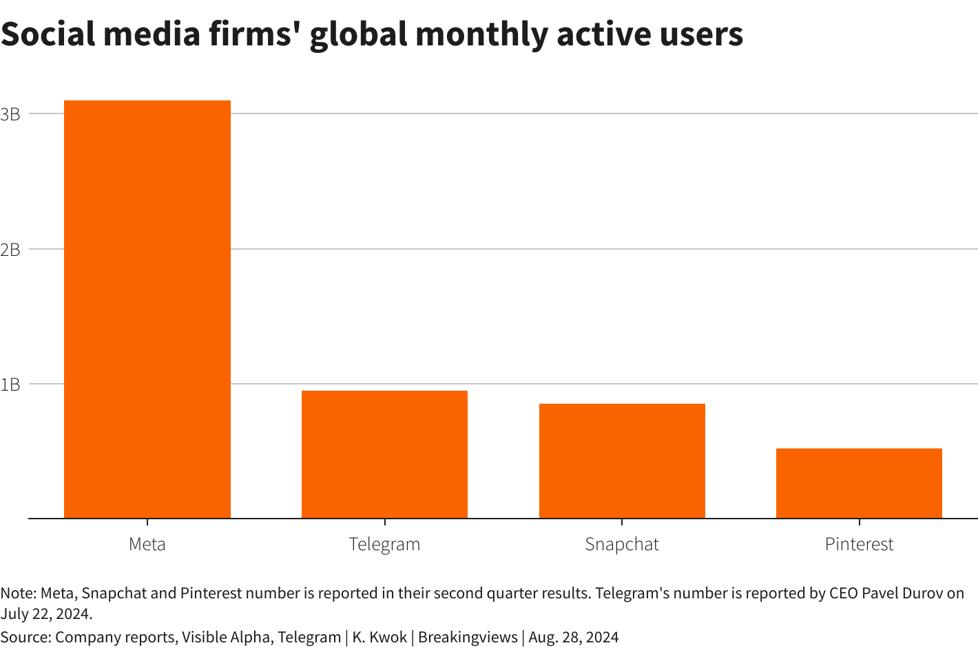 Telegram首席執行官被捕對大型科技公司發出模糊警告 | 路透社