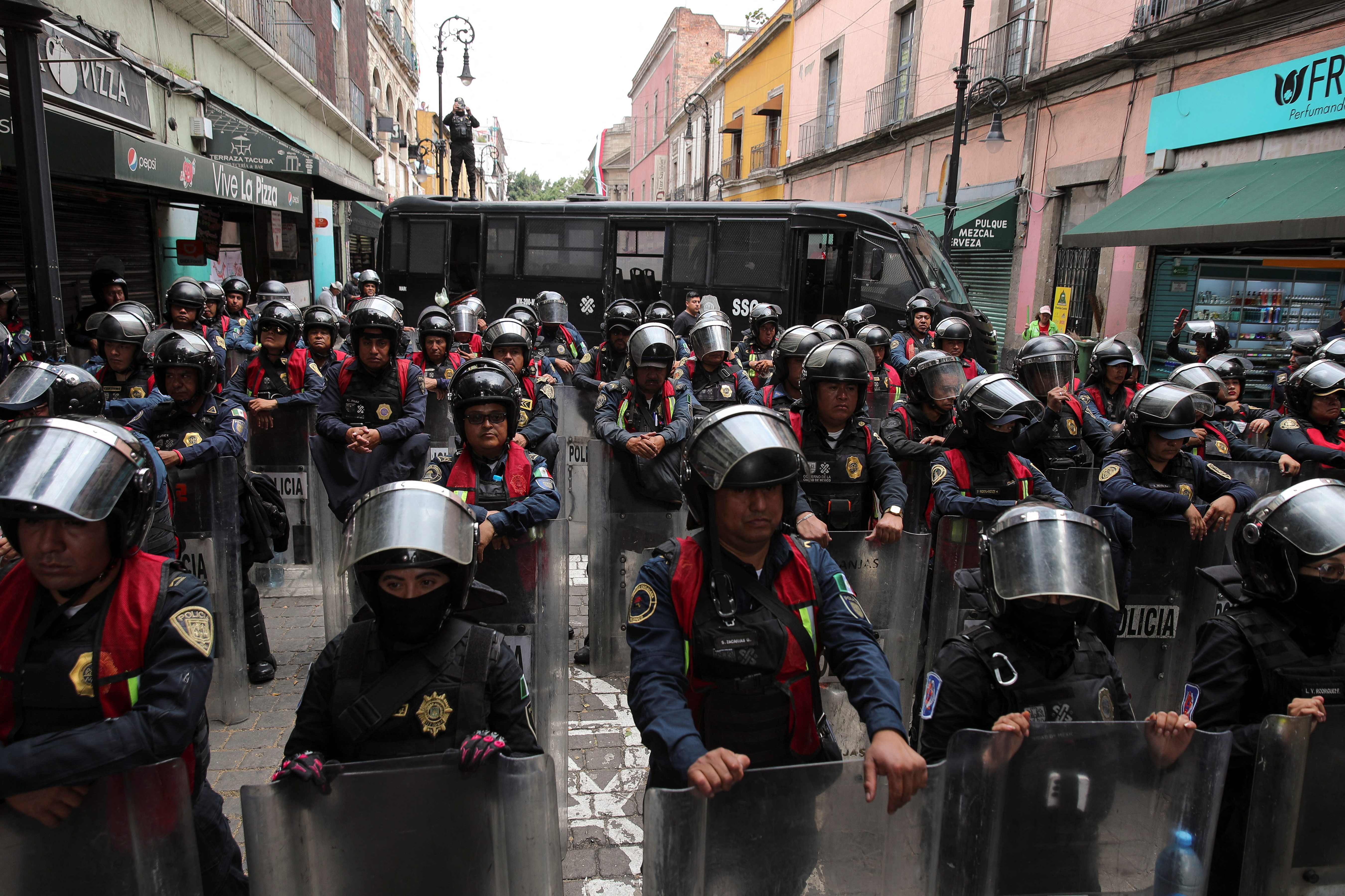 警察在墨西哥城的主廣場索卡洛附近沿街站崗,示威者在經過參議院通過一項備受爭議的司法改革提案後進行抗議,時間為2024年9月12日。路透社/亨利·羅梅羅紐約/墨西哥城,9月17日(路透社)- 墨西哥的司法改革引發了投資者對法治和政府機構實力的不確定性的擔憂,但隨着改革已被市場消化,一些分析師認為可能會出現買入機會。
