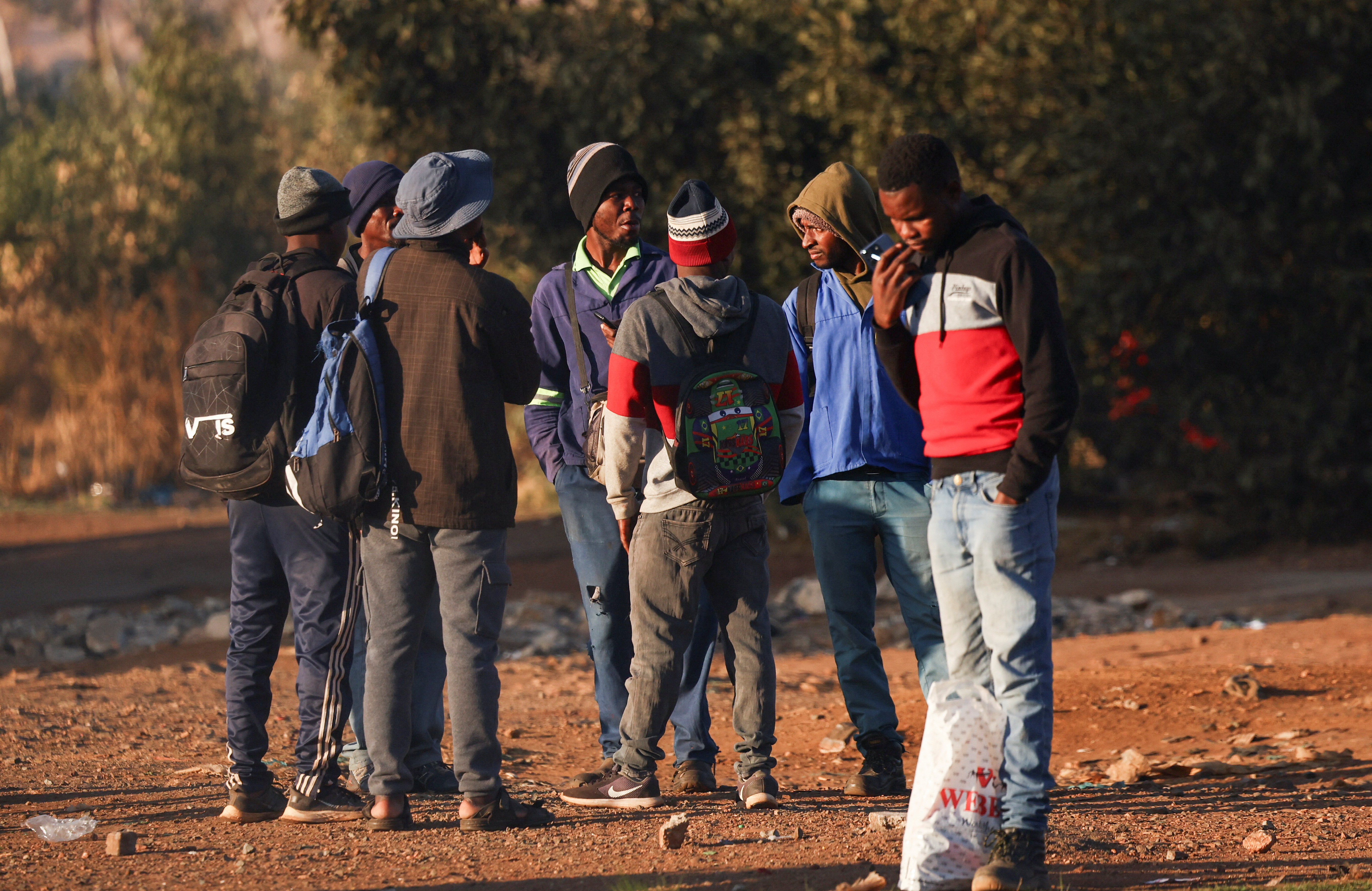 項目 1 共 2 求職者在南非約翰內斯堡南部的艾肯霍夫,路邊等待路過司機提供的臨時工作,2024年9月19日。路透社/西非·西貝科/檔案照片