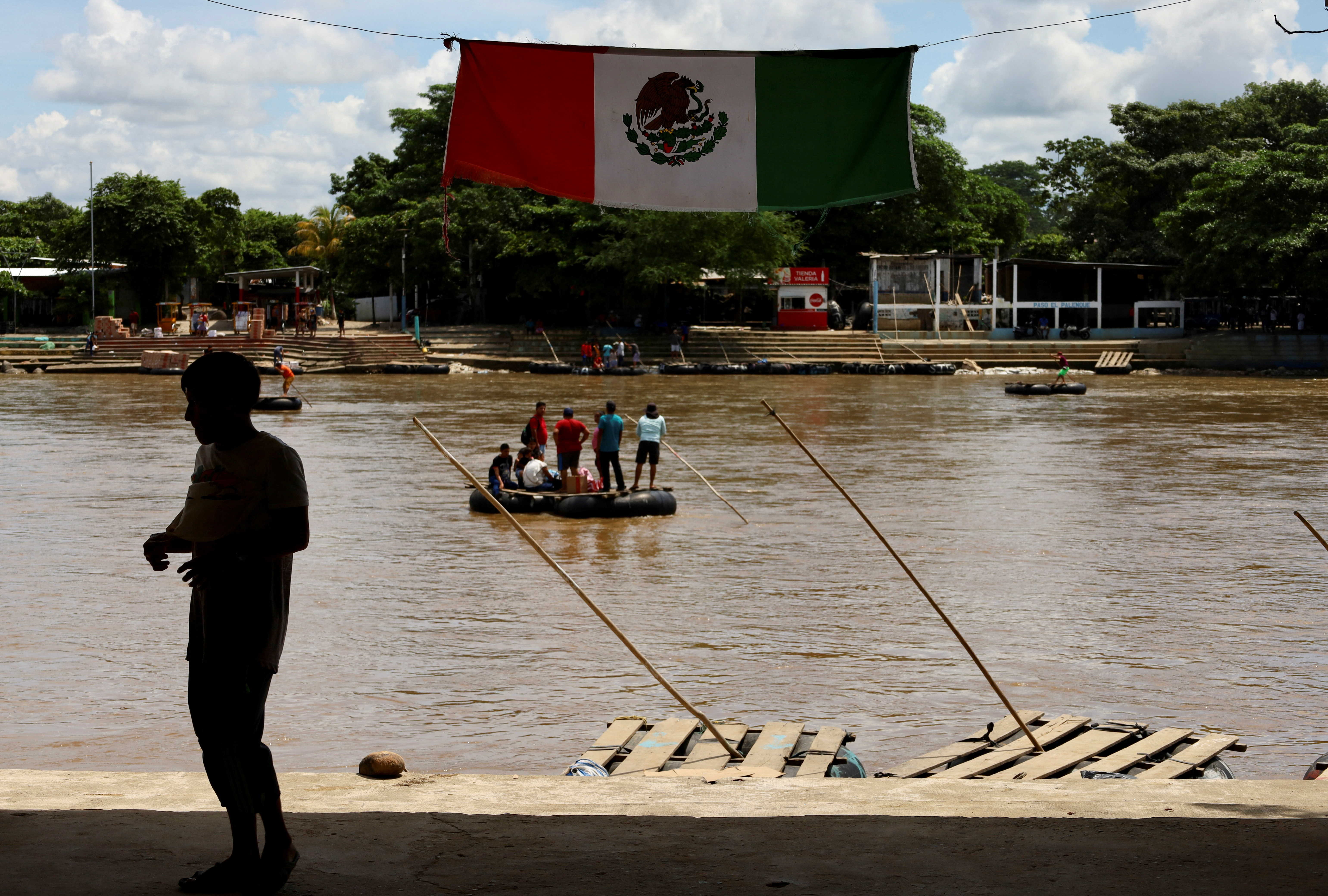 5個項目中的第1個 一名男子站在墨西哥國旗下,旁邊是墨西哥和危地馬拉之間的蘇基亞特河,地點在墨西哥的西烏達德·伊達爾戈,2024年10月6日。路透社/何塞·託雷斯