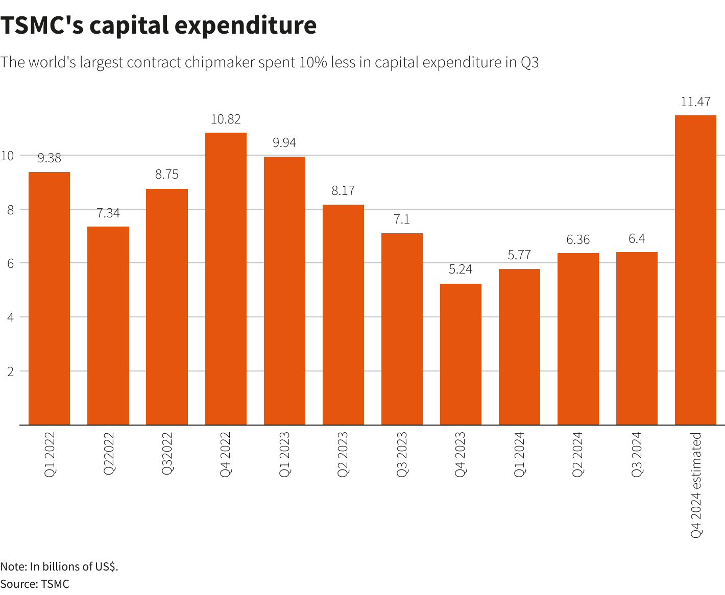台積電表示,2025年的資本支出可能會高於今年,儘管沒有提供具體數字。