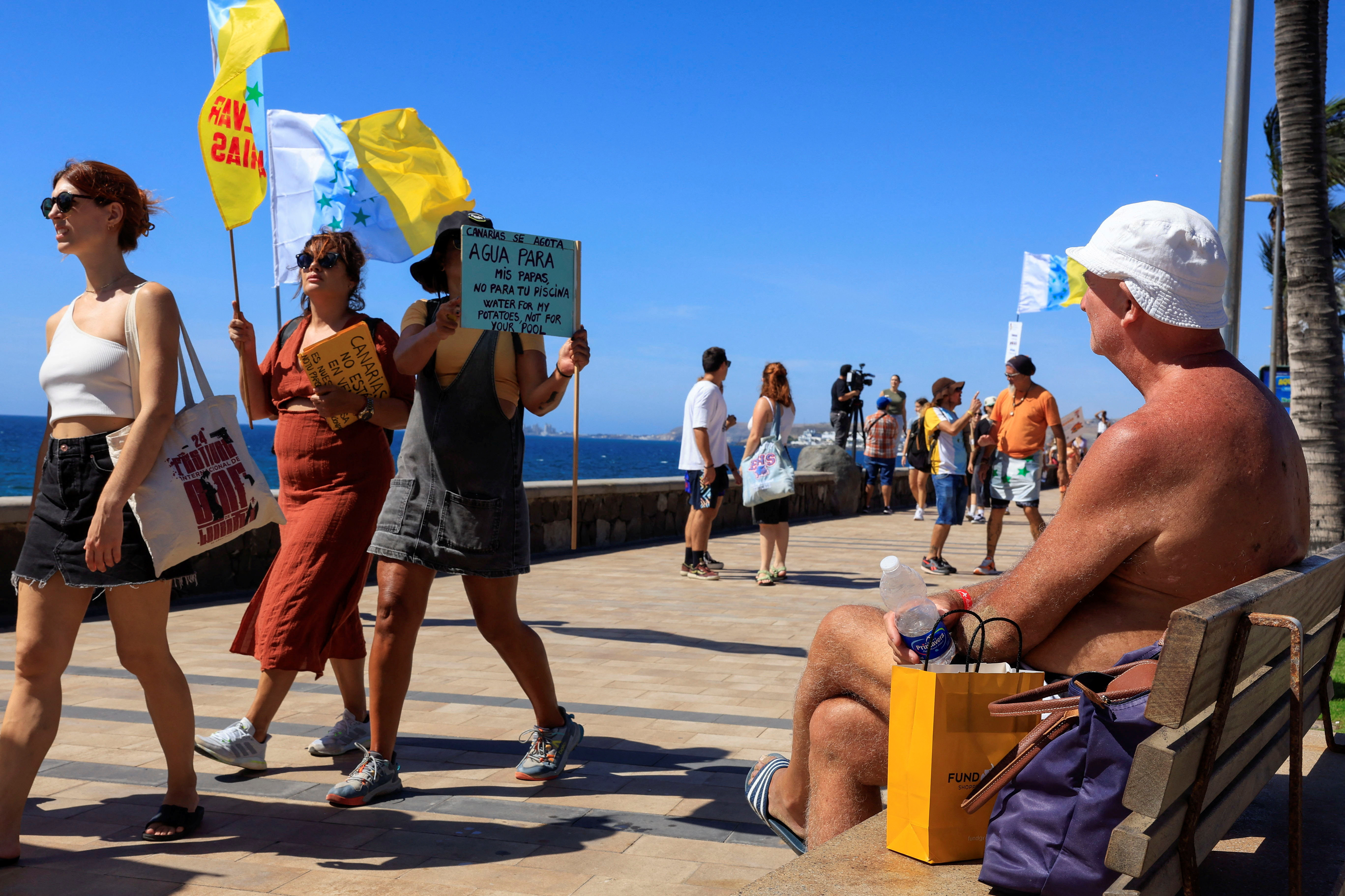 在“加那利羣島有極限”的口號下,居民們在格蘭卡納里亞、特內里費、拉帕爾馬、富埃特文圖拉、蘭薩羅特和埃爾希羅同時示威,呼籲改變島嶼的旅遊模式。