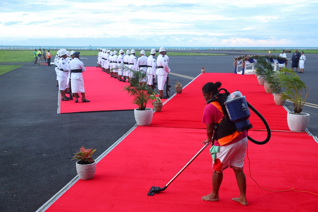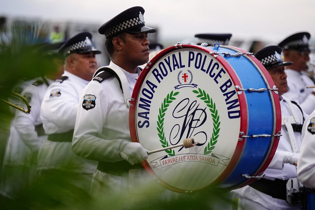 查爾斯隨後檢查了由薩摩亞警察組成的榮譽衞隊。該國沒有武裝部隊。