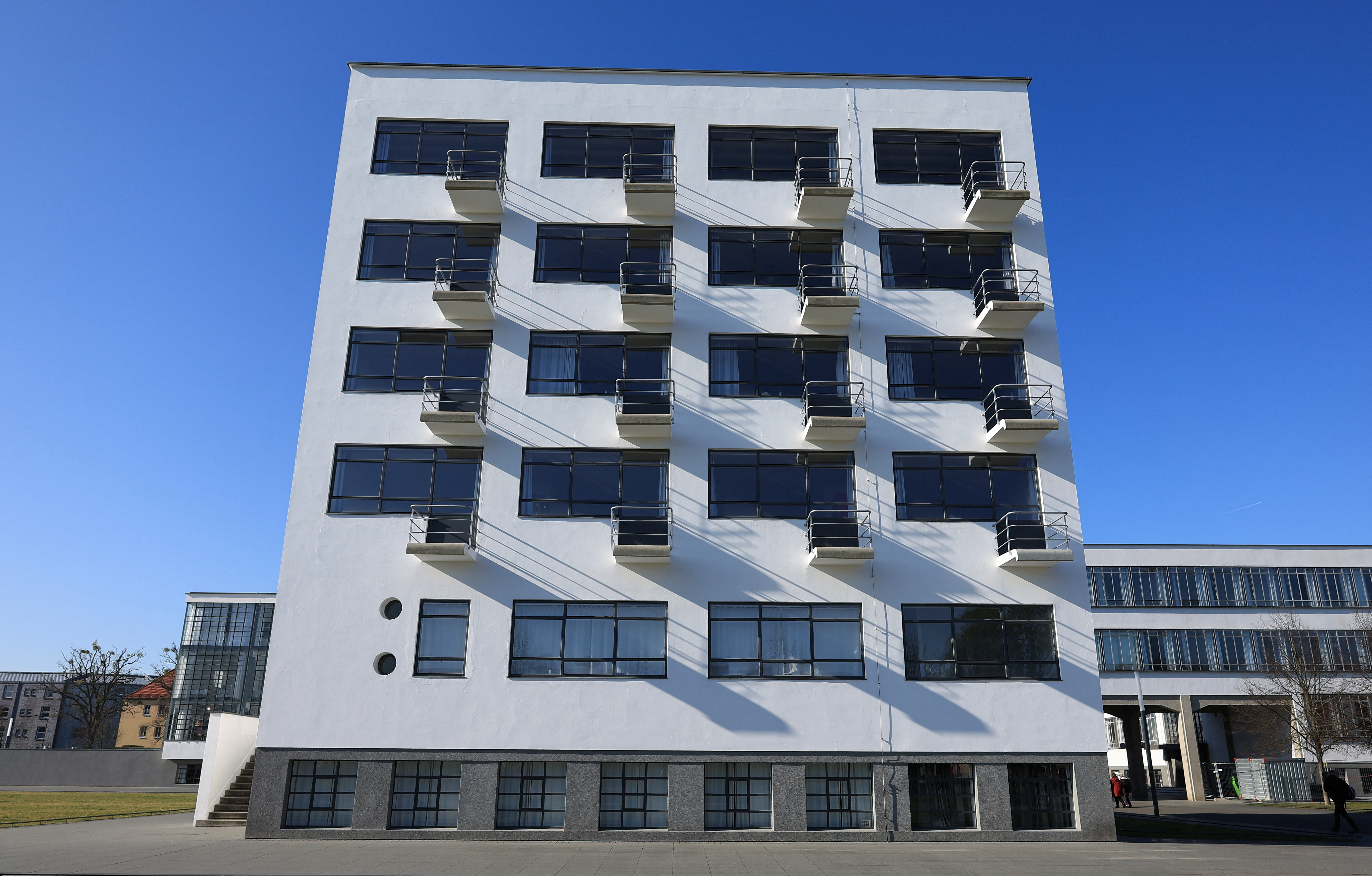 德紹的包豪斯建築,以其獨特的鋼窗框、簡潔的外立面和彎曲的字母,是一個國際標誌,激勵了許多戰後社會住房,儘管並非所有這些住房都成功或受歡迎。