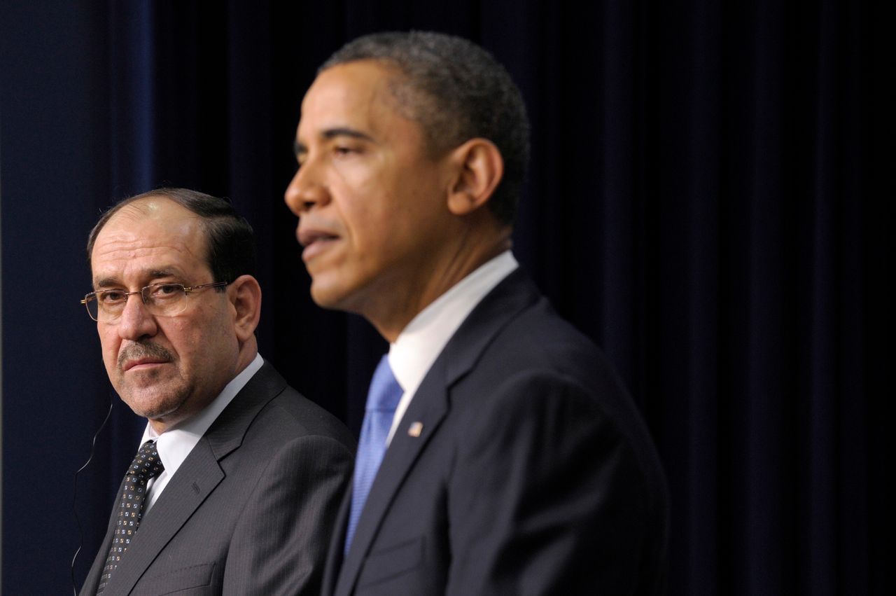 2011年12月,伊拉克時任總理努裏·馬利基在白宮拜訪時任美國總統奧巴馬。圖片來源:Susan Walsh/Associated Press2011年,時任總理努裏·馬利基與時任美國總統奧巴馬未能就美軍持續駐軍達成協議,導致所有美軍當年撤離並終止訓練任務。隨後伊斯蘭國勢力崛起,並於2014年佔領伊拉克第二大城市摩蘇爾。
