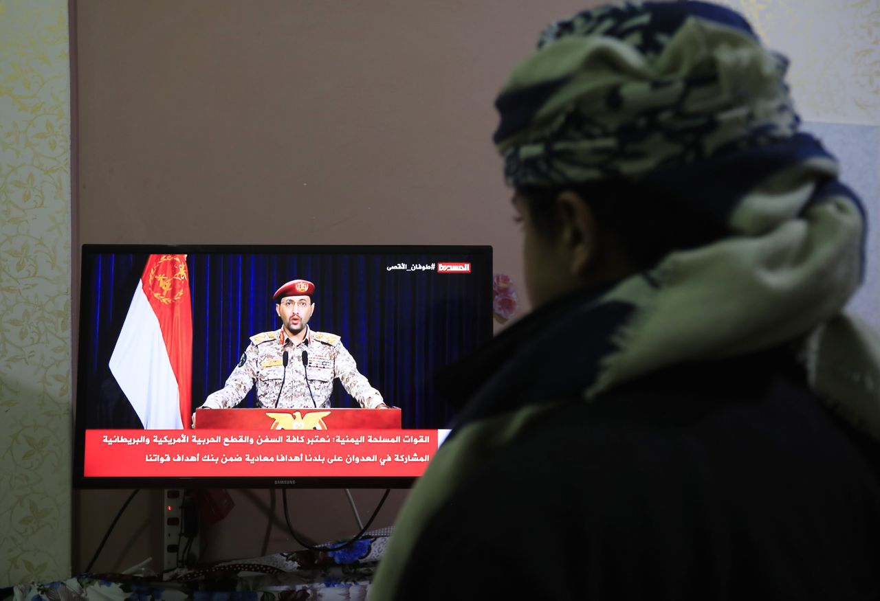 胡塞武裝軍事發言人本週發表電視講話。這個也門反政府組織為聲援哈馬斯,對紅海商船發動了襲擊。圖片來源:yahya arhab/Shutterstock然而,沙特官員希望在關注善後事宜之前先停止加沙的戰鬥。