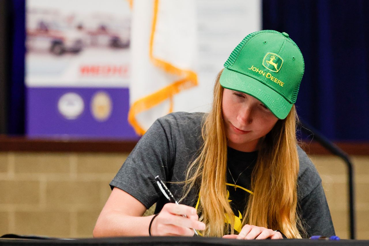 2023年5月,愛荷華州一名高中生簽署了約翰迪爾公司的學徒文件。政府對大學的財政支持力度約為學徒制的1000倍。圖片來源:Nikos Frazier/Quad City Times/美聯社2022年一項民意調查詢問家長,他們更希望孩子就讀四年制大學,還是參加三年制學徒計劃——既能接受職業培訓,學習期間還能獲得報酬。近半數大學畢業生家長選擇了學徒制。