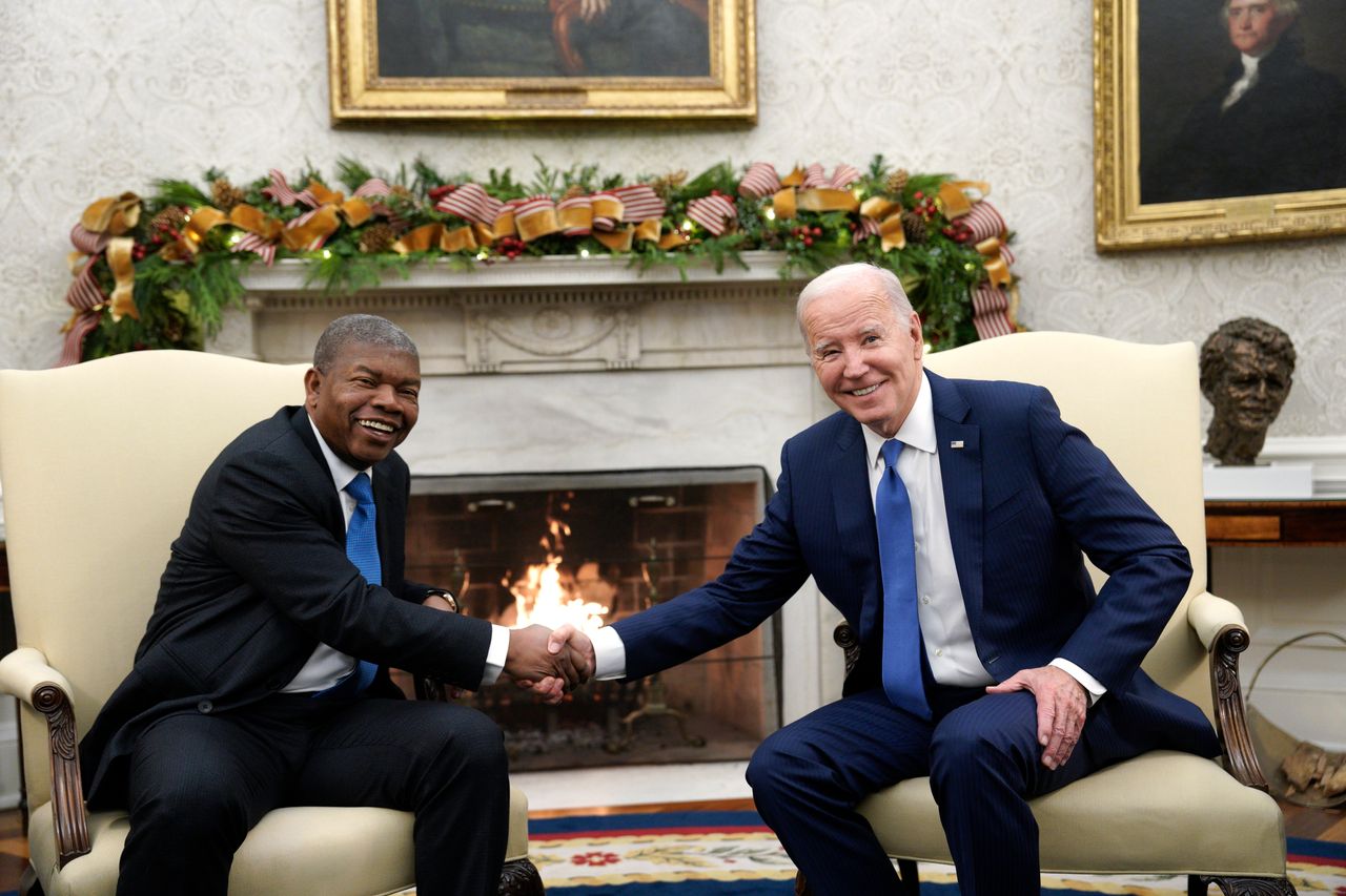 2023年11月,安哥拉總統若昂·洛倫索與拜登總統在橢圓形辦公室會晤。圖片來源:尤里·格里帕斯/新聞池雪佛龍、埃克森美孚等美國石油公司在非洲活躍數十年,即便內戰期間也持續在安哥拉石油資源豐富的卡賓達飛地開展業務。