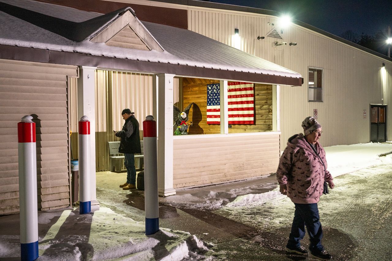 上週在新罕布什爾州羅切斯特市美國退伍軍人協會駐地外參加集會的選民們。攝影:圖片提供:Ann Hermes/華爾街日報