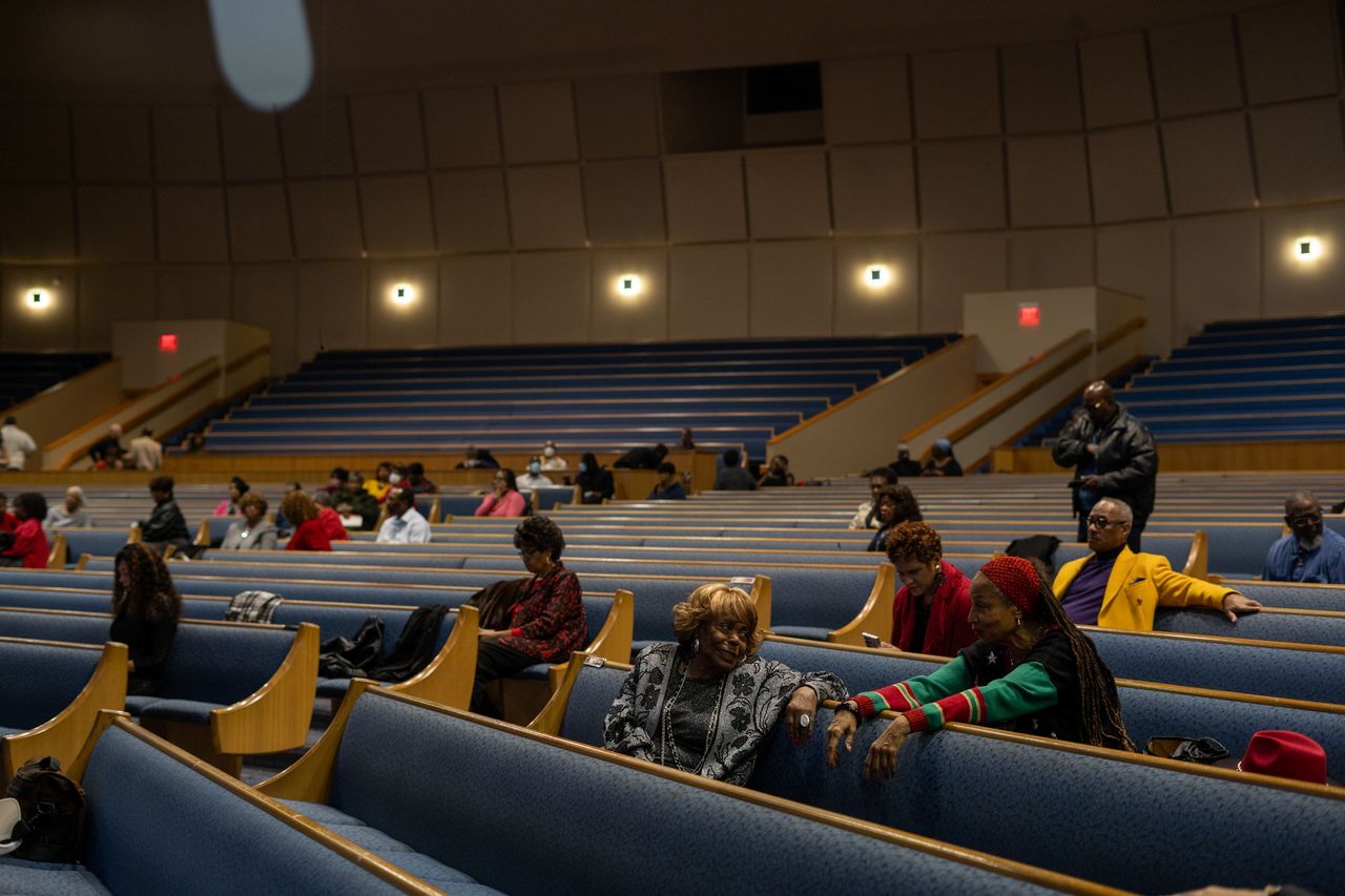 大恩典堂的成員們提到了總統幫助他們從疫情中恢復的工作。照片:Cydni Elledge為《華爾街日報》拍攝