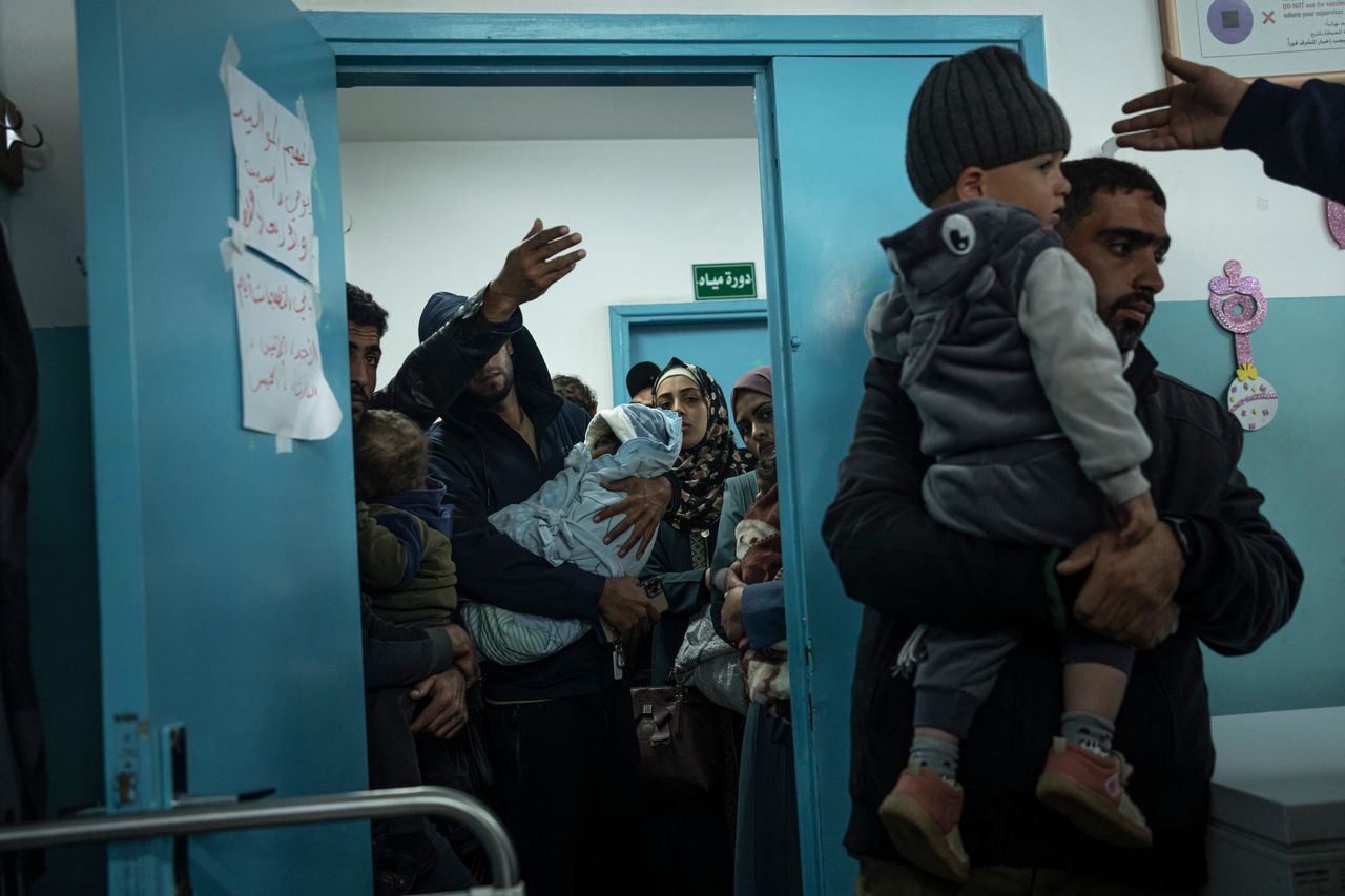 巴勒斯坦人帶着孩子排隊接種疫苗以預防疾病。圖片來源:法蒂瑪·什拜爾/美聯社世界糧食計劃署、世界衞生組織和聯合國兒童基金會的負責人週一表示,向該飛地運送足夠的物資將取決於新入境路線的開通,以及每天允許更多卡車通過邊境檢查、減少對人道主義工作人員行動的限制,並保障援助物資獲取和分發人員的安全。