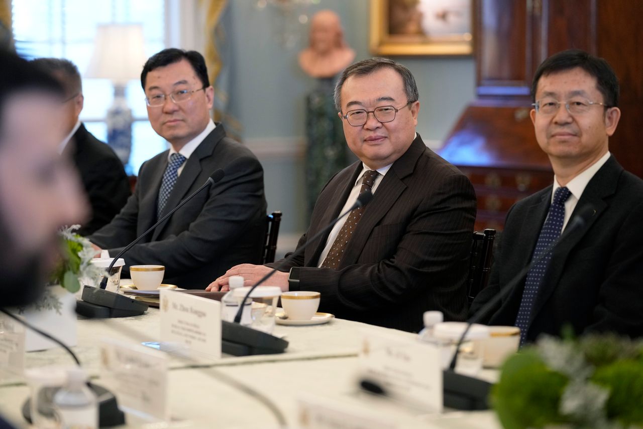 預計將出任中國下一任外交部長的劉建超(中)本月早些時候訪問了華盛頓。圖片來源:Susan Walsh/Associated Press去年夏天,習近平在物色接替突然被免職的秦剛的外長人選時,知情人士説,有一個名字排在了這位中國領導人的名單首位。