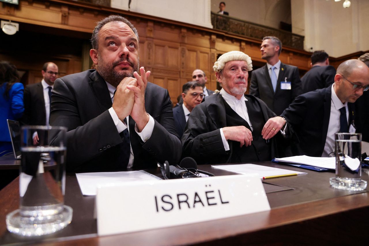 以色列外交部法律顧問塔爾·貝克爾與英國法學家馬爾科姆·肖在海牙國際法院。圖片來源:蒂洛·施穆爾根/路透社以色列政府可能選擇遵守法院部分裁決,但很可能會拒絕任何要求其調整軍事行動的決定。