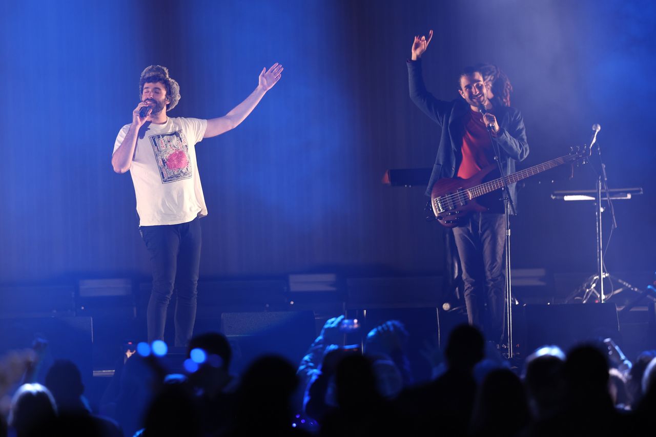 AJR樂隊的亞當·梅特(右)於12月在佛羅里達州邁阿密Amerant Bank Arena的演出。圖片來源:羅德里戈·瓦雷拉/蓋蒂圖片社流行樂隊AJR的亞當·梅特前往華盛頓,並取得了一項罕見的成就:獲得兩黨支持,調查在2400萬英畝聯邦油氣用地上快速推進新能源項目的計劃。
