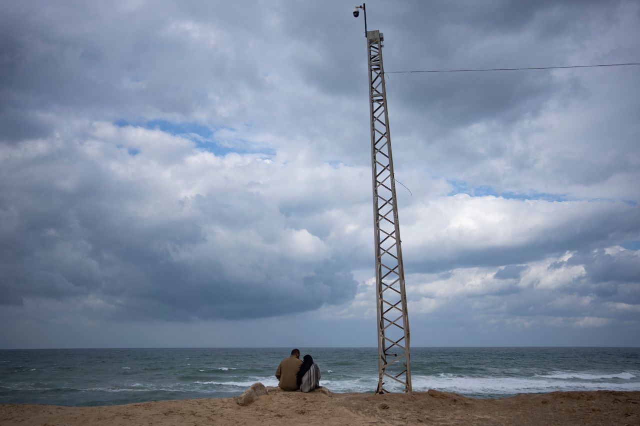 週六,巴勒斯坦人坐在毗鄰埃及邊境的拉法海灘上。圖片來源:法蒂瑪·什拜爾/美聯社加沙衞生部門稱,本輪衝突已造成超2.6萬人喪生,其中大部分是婦女兒童。該數據未區分戰鬥人員與平民。