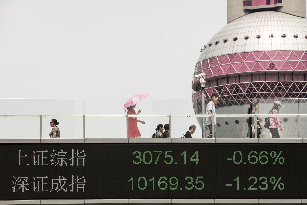 人們行走在中國上海浦東陸家嘴金融區的高架步道上。圖片來源:沈啓來/彭博新聞隨着市場對北京將進一步實施貨幣政策寬鬆以提振經濟的預期升温,中國基準國債收益率降至二十多年來的最低水平。