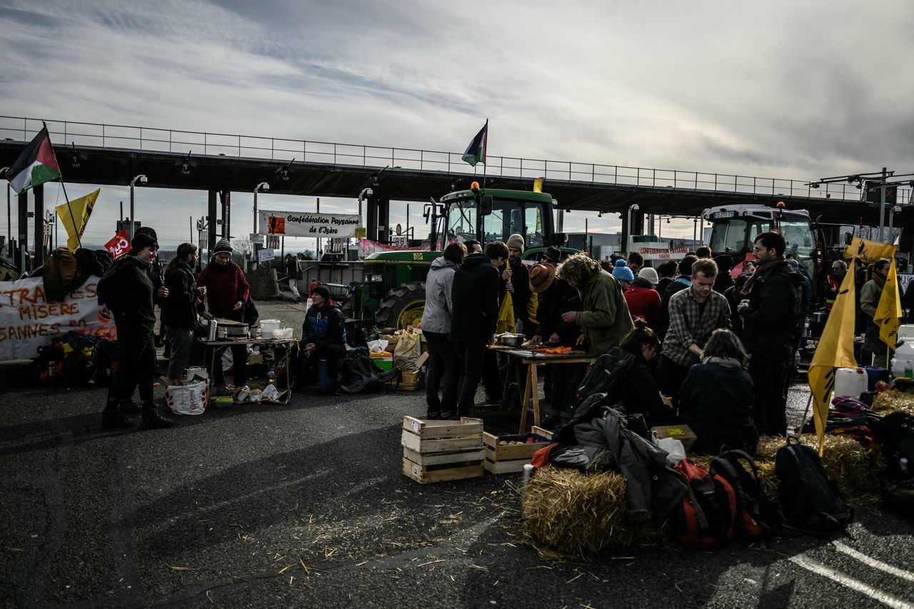 法國里昂外圍高速公路收費站附近的農民。圖片來源:jeff pachoud/Agence France-Presse/Getty Images法國最大農民工會FNSEA的主席阿爾諾·盧梭週二表示:“我們的決心是絕對的。我們不會吃兩片阿司匹林就回家。”