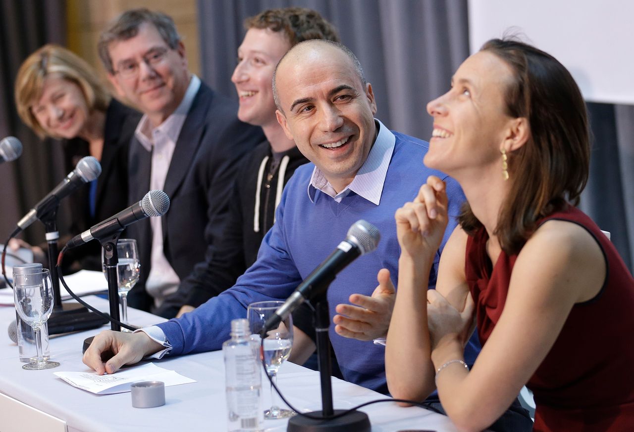 尤里·米爾納(中)在2013年的一場活動中,與Facebook CEO馬克·扎克伯格和沃西基交談甚歡。圖片來源:Jeff Chiu/美聯社沃西基表示,公司在暫停銷售前已積極與FDA溝通,但未能有效傳達信息。