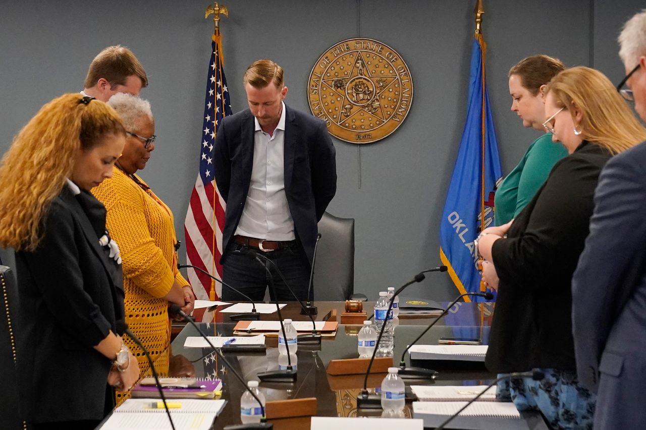 沃爾特斯在與俄克拉荷馬州教育委員會成員的一次會議中祈禱,他主張將“十誡”引入課堂。圖片來源:蘇·奧格羅基/美聯社沃爾特斯在俄克拉荷馬州麥卡萊斯特長大,他説自己成為一名教育工作者是受到一位讓歷史變得生動的老師的啓發,尤其是亞伯拉罕·林肯在壓力下的領導力。他在麥卡萊斯特高中任教的八年期間教授AP美國曆史、世界歷史和政體課程,並在2016年成為俄克拉荷馬州年度教師決賽選手。