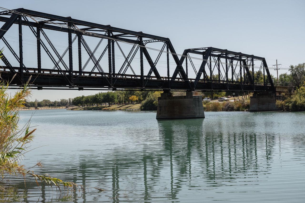 新墨西哥州卡爾斯巴德佩科斯河上的鐵路軌道。霍爾泰克公司計劃通過鐵路將核廢料運至新墨西哥州的中轉儲存設施。與此同時,一些二疊紀地區的社區正為化石燃料開採逐漸枯竭的未來做準備,積極爭取成為放射性廢料的存放地。