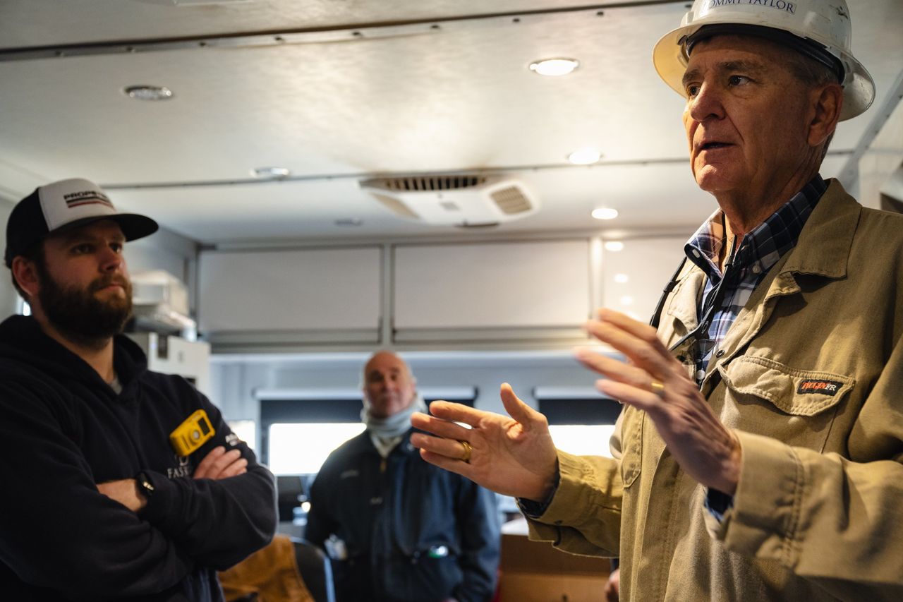法斯肯公司助理總經理湯米·泰勒(右)在西德克薩斯州一處壓裂作業現場。