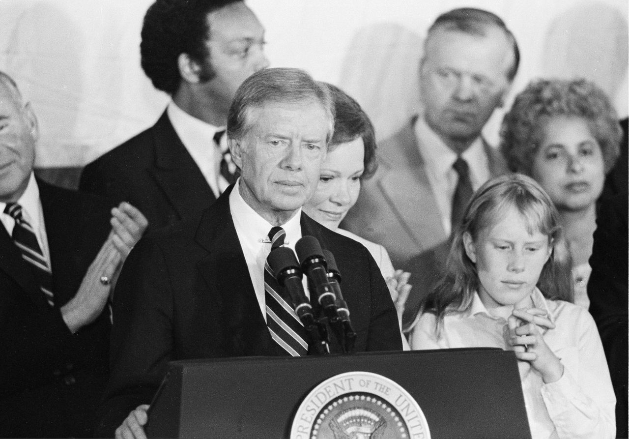 共和黨人一直試圖將民主黨總統及候選人與吉米·卡特相提並論——卡特任內曾面臨滯脹和伊朗人質危機。圖片來源:Barry Thumma/Associated Press"人們來到此地後會發現一個他們從未知曉的勵志故事,“愛荷華州西布蘭奇市胡佛總統圖書館暨博物館館長托馬斯·施瓦茨表示,“雖然他們認為胡佛的總統任期被經濟危機吞噬,但正如林肯總統那句名言所説:‘我從未掌控時局,而是時局掌控着我。’”