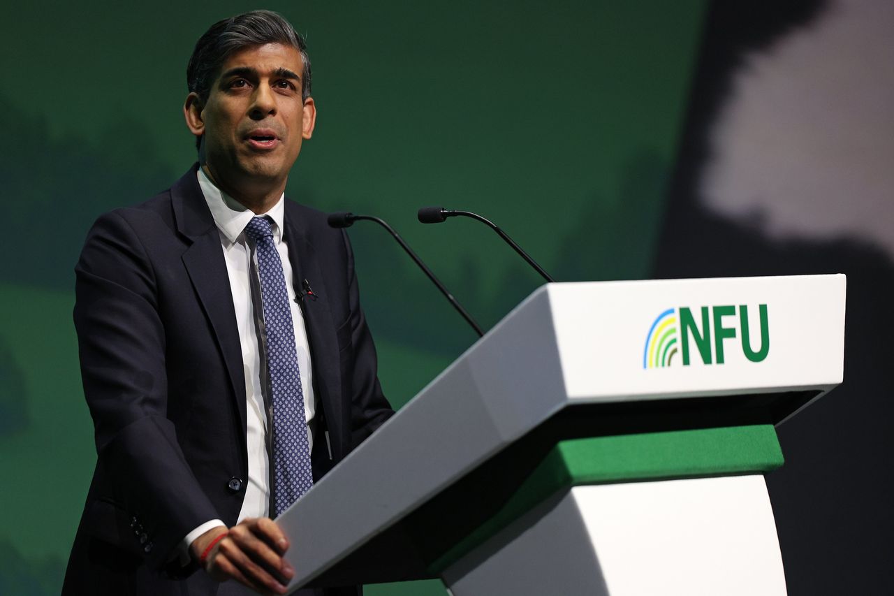 英國首相里希·蘇納克週二在伯明翰舉行的全國農民聯盟年會上發表講話。圖片來源:Adrian Dennis/Zuma Press英國經濟陷入衰退後,保守黨今年面臨大選的噩夢,而保守黨只能怪自己。至少他們的困境對其他人是一個警告。