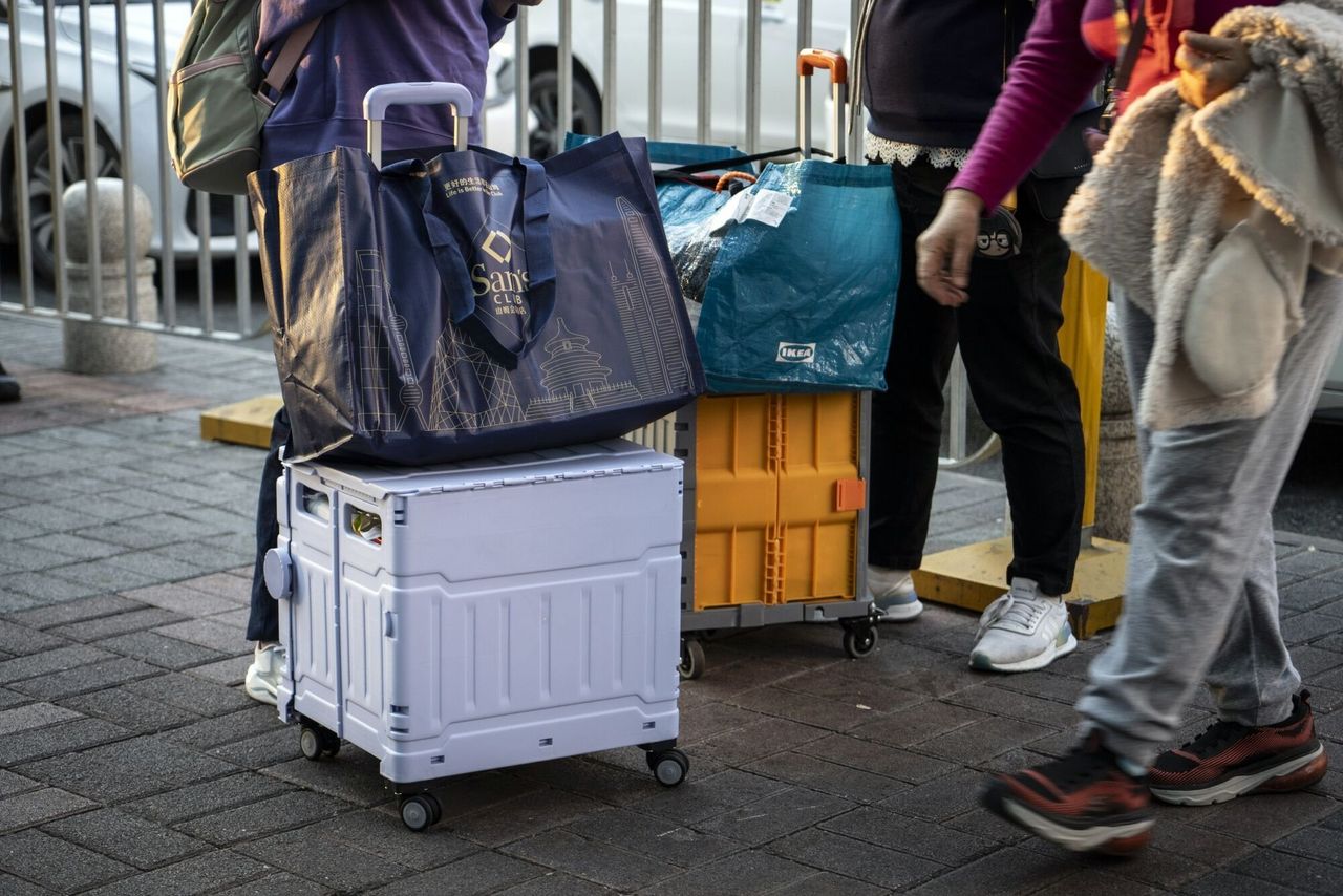 滿載購物物品的人們準備從深圳進入香港。攝影:沈啓來/彭博新聞社聯繫Clarence Leong,郵箱:[email protected]