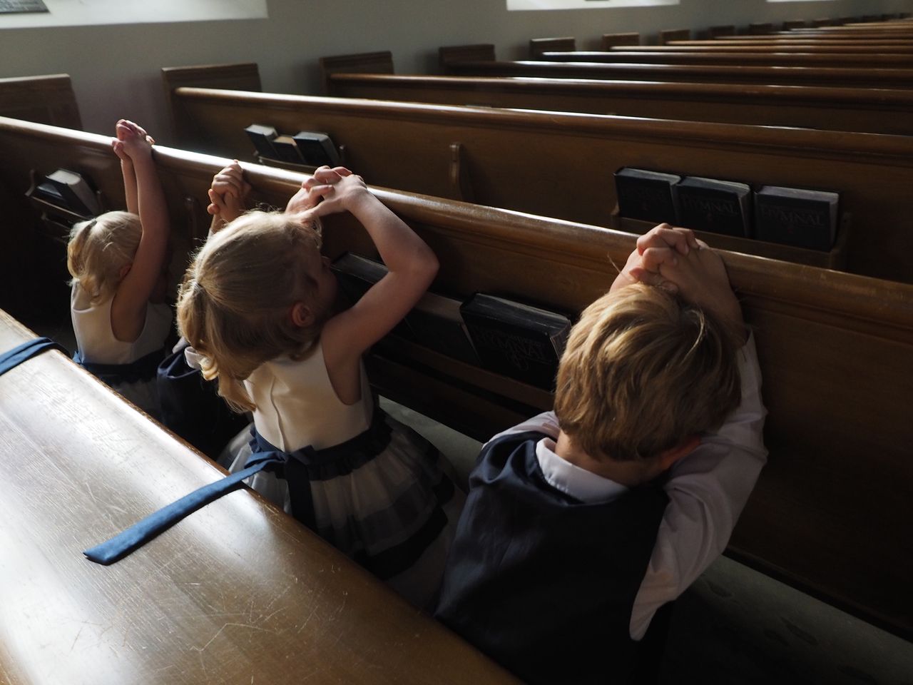 我必須承認,我曾威脅小女兒説,如果她繼續吵鬧,神父會從祭壇上下來訓斥她。這並非虛言。每當有小孩擾亂秩序,我們的牧師就會停止彌撒,投來令人膽寒的目光。許多教友也是如此。但再多的塗色書、零食或奶瓶,都無法彌補冗長佈道的煎熬。