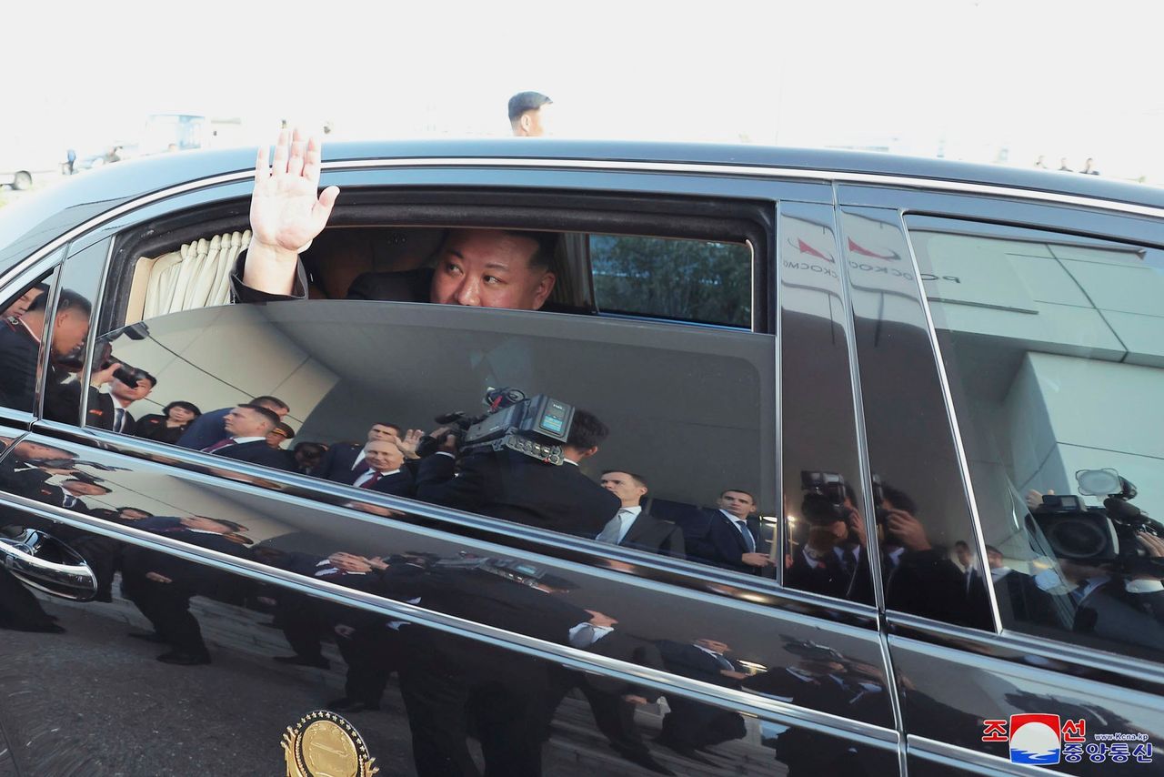 朝鮮提供的照片中,金正恩在9月與弗拉基米爾·普京在俄羅斯遠東地區舉行峯會後,從他的國賓車中揮手致意。圖片來源:朝中社/美聯社如今局勢已大不相同,兩國重新建立的夥伴關係日益肆無忌憚。近幾個月來,金正恩與普京大幅強化了外交、經濟和軍事紐帶。