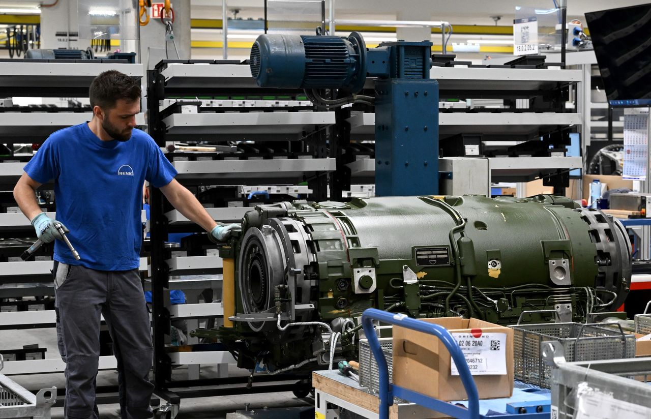 德國南部奧格斯堡,齒輪製造公司倫克(Renk)的裝配車間內,一名員工正在加工坦克變速箱。圖片來源:christof stache/Agence France-Presse/Getty Images週四公佈的採購經理人調查顯示,儘管德國關鍵工業部門前景黯淡,但歐元區2月份經濟持續復甦。