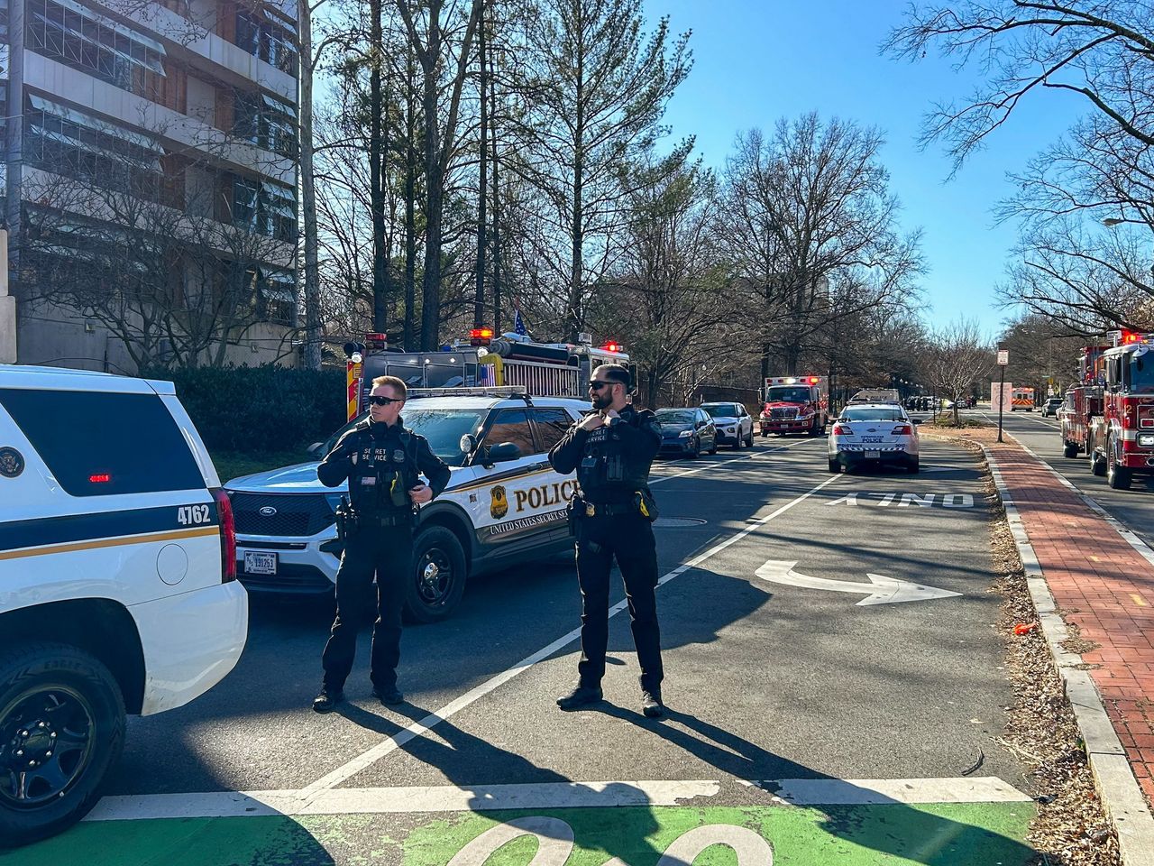 週日,華盛頓大都會警察局表示,特勤局在下午1點左右接到電話,報告稱大使館外有人表現出精神困擾的跡象。在特勤局官員能夠幫助他之前,此人將液體倒在自己身上並自焚。在消防員到達之前,官員們已將火焰撲滅。