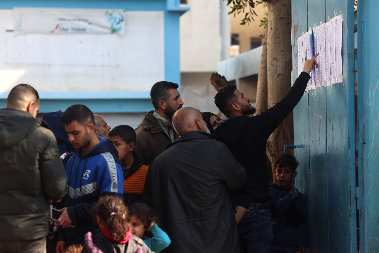 流離失所的巴勒斯坦人聚集在拉法一所收容加沙各地難民的學校庭院內。圖片來源:穆罕默德·阿貝德/法新社/蓋蒂圖片社